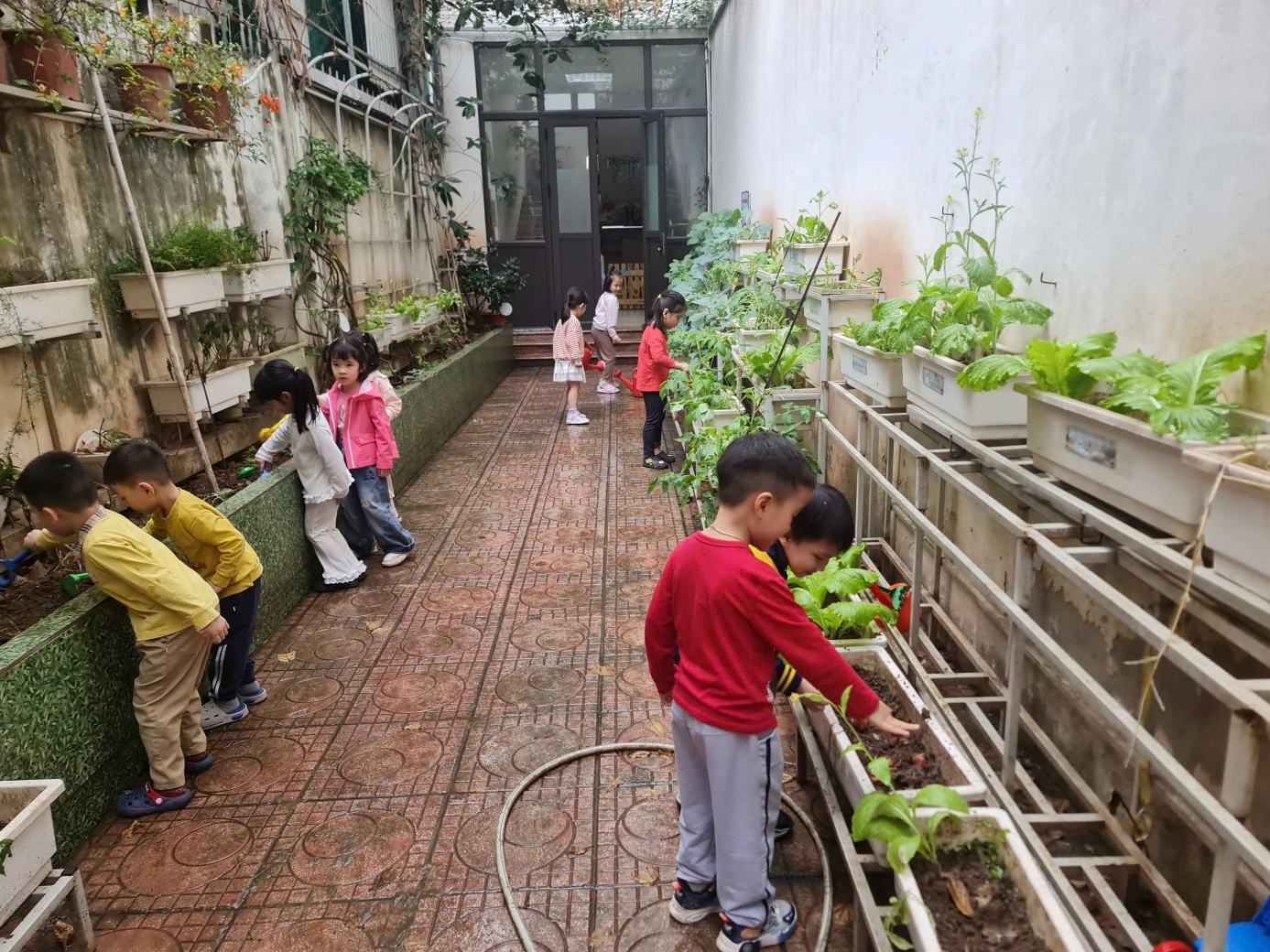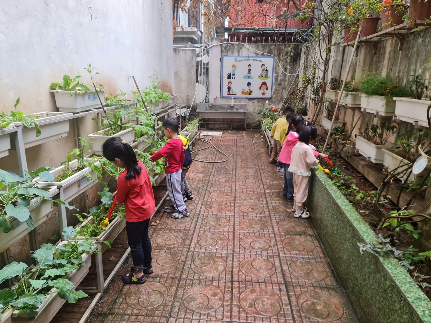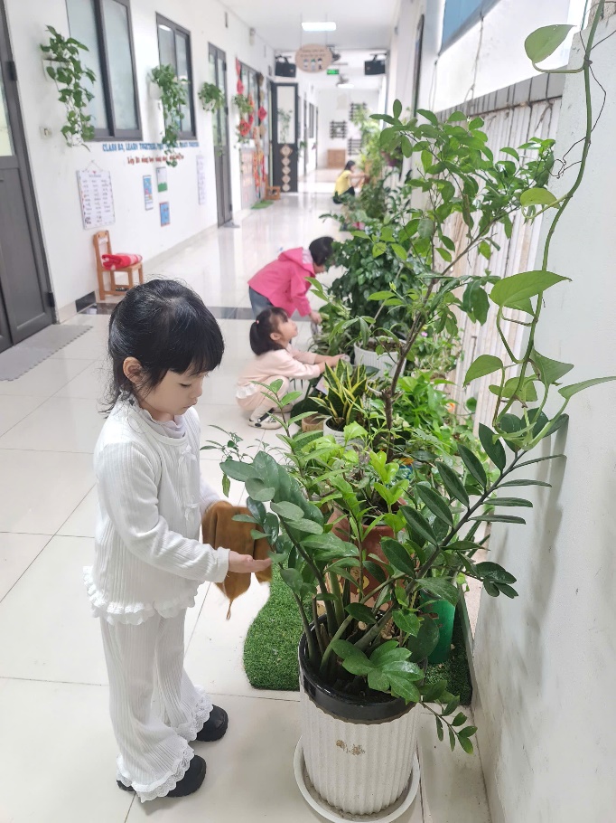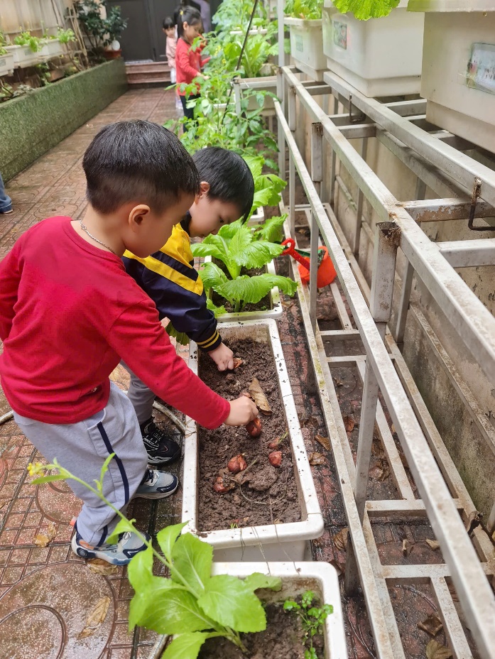 Với những đôi bàn tay nhỏ xinh, các bé đã tự tay vun đất, tưới nước và chăm sóc cho những mầm xanh mới.