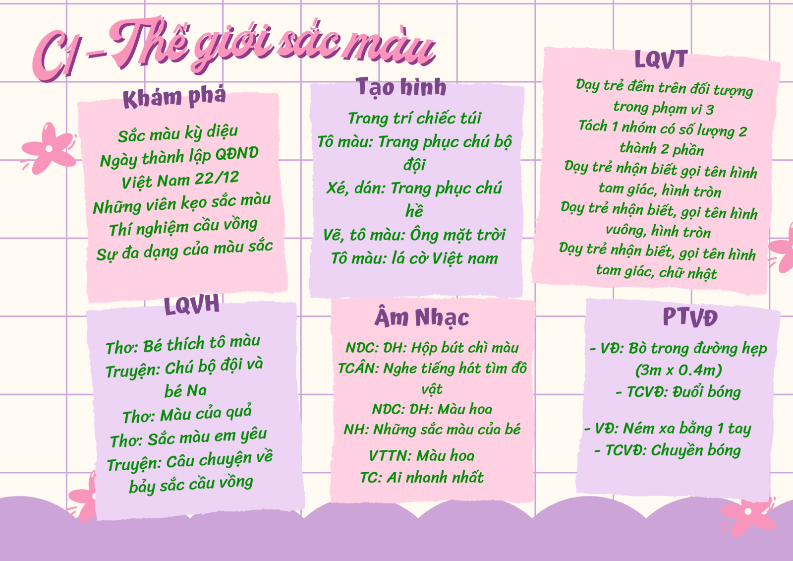 Thời khóa biểu lớp MGB C1 : Chủ đề " Thế giới sắc màu "
