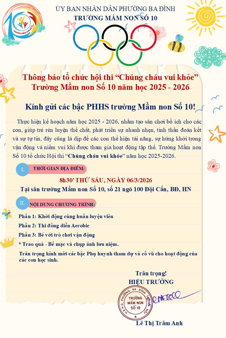 Thông báo tổ chức hội thi "Chúng cháu vui khỏe" Năm học 2025-2026