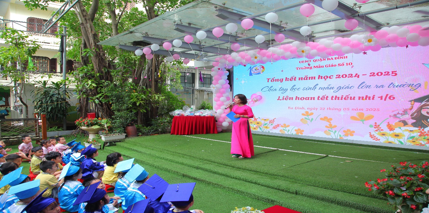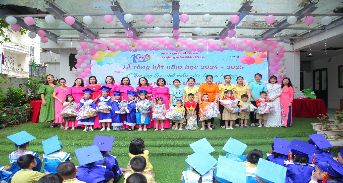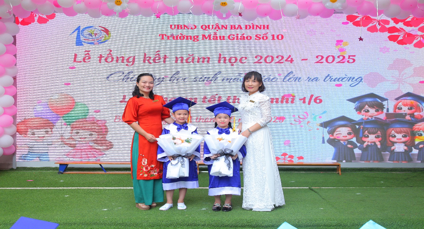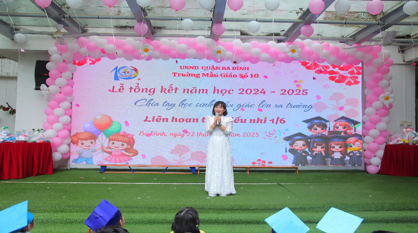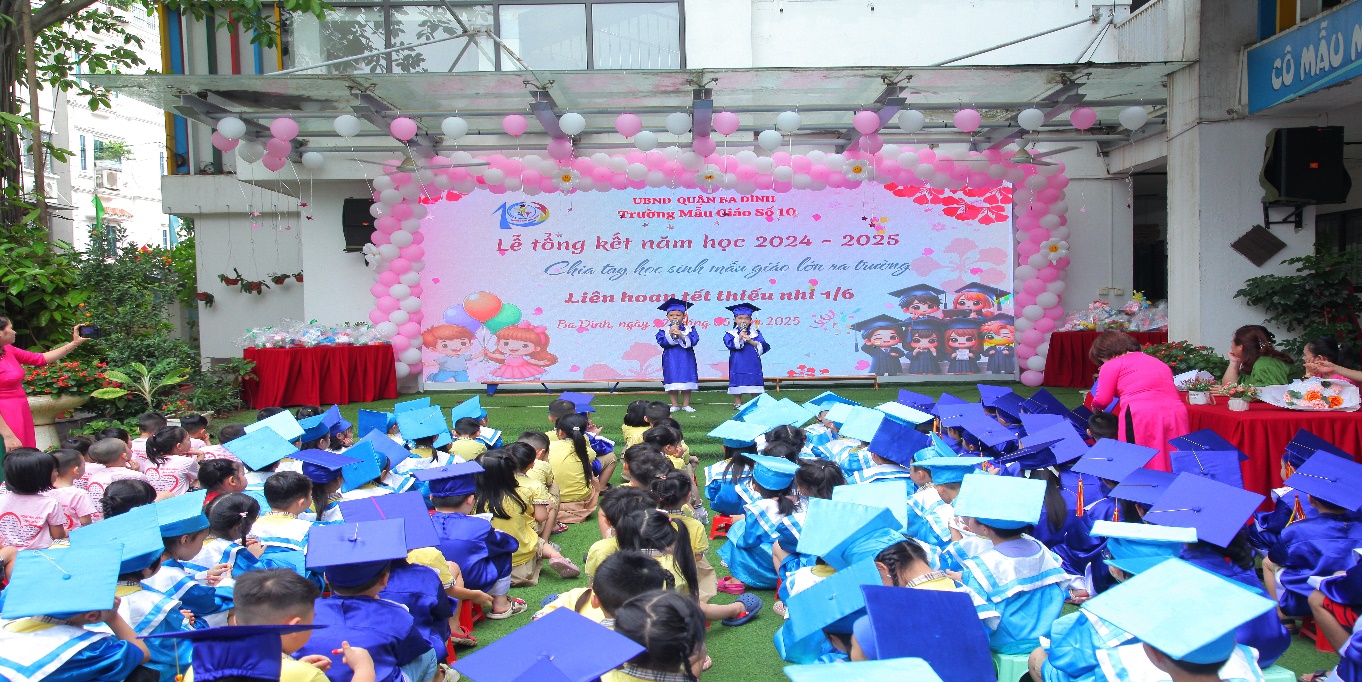Sáng ngày 22/5/2025, lớp MGN – B3 Trường mẫu giáo số 10 tổ chức lễ tổng kết năm học 2024 – 2025. Những tiết mục văn  nghệ đặc sắc đã khuấy động không khí tại buổi lễ tổng kết cuối năm, buổi lễ chia tay với nhiều cảm xúc thân thương của các bạn khối MGL 5-6 tuổi và  mãi nhớ về các cô giáo Trường mẫu giáo số 10 và các em nhỏ đáng yêu ở lớp sau!