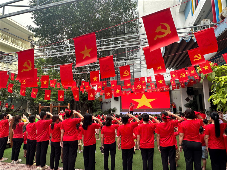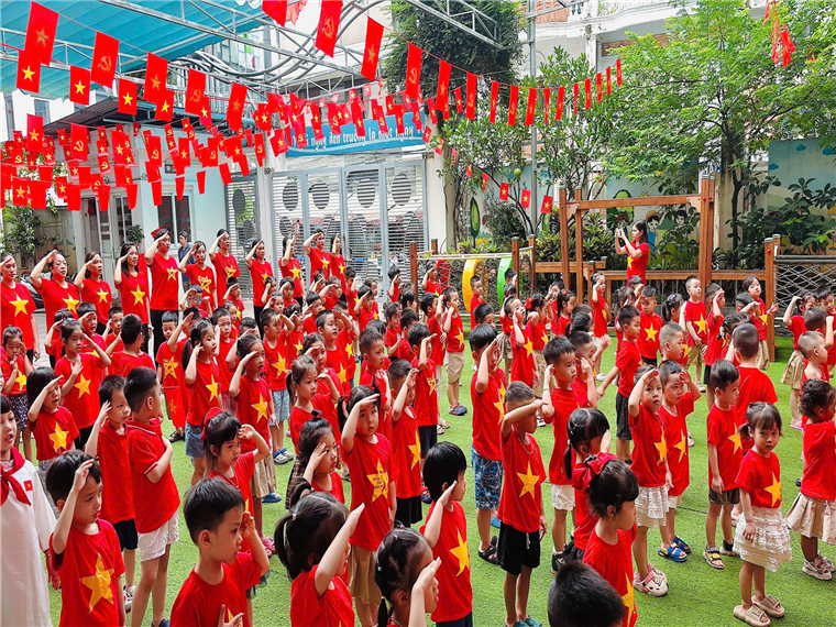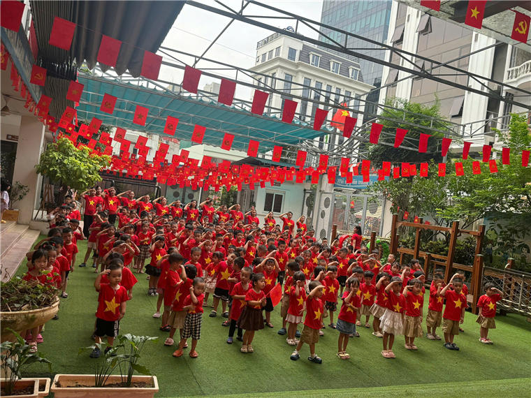 🌸Khắp khuôn viên trường, cờ Tổ quốc, băng rôn và khẩu hiệu đỏ rực tạo nên một bức tranh sinh động, đậm đà màu sắc quê hương. Các lớp học ngập tràn sắc đỏ – vàng, cùng những nụ cười hồn nhiên, trong sáng của các bé, như những đóa hoa tươi thắm nở giữa lòng đất mẹ. Tất cả tạo nên một không gian ấm áp, vui tươi, tràn đầy tự hào và niềm tin vào tương lai.