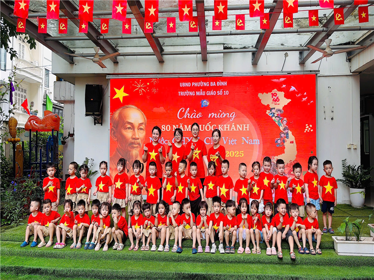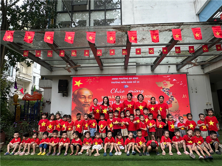 Hòa chung với không khí rộn ràng, phấn khởi của cả nước, Trường Mẫu giáo số 10 long trọng chào đón kỷ niệm 80 năm Cách mạng Tháng Tám thành công (19/8/1945 – 19/8/2025) và Quốc khánh nước Cộng hòa Xã hội Chủ nghĩa Việt Nam (02/9/1945 – 02/9/2025). Nhân dịp này, trường chúng tôi như khoác lên mình "tấm áo mới" rực rỡ sắc cờ đỏ sao vàng, tung bay kiêu hãnh dưới ánh nắng thu vàng ấm áp.