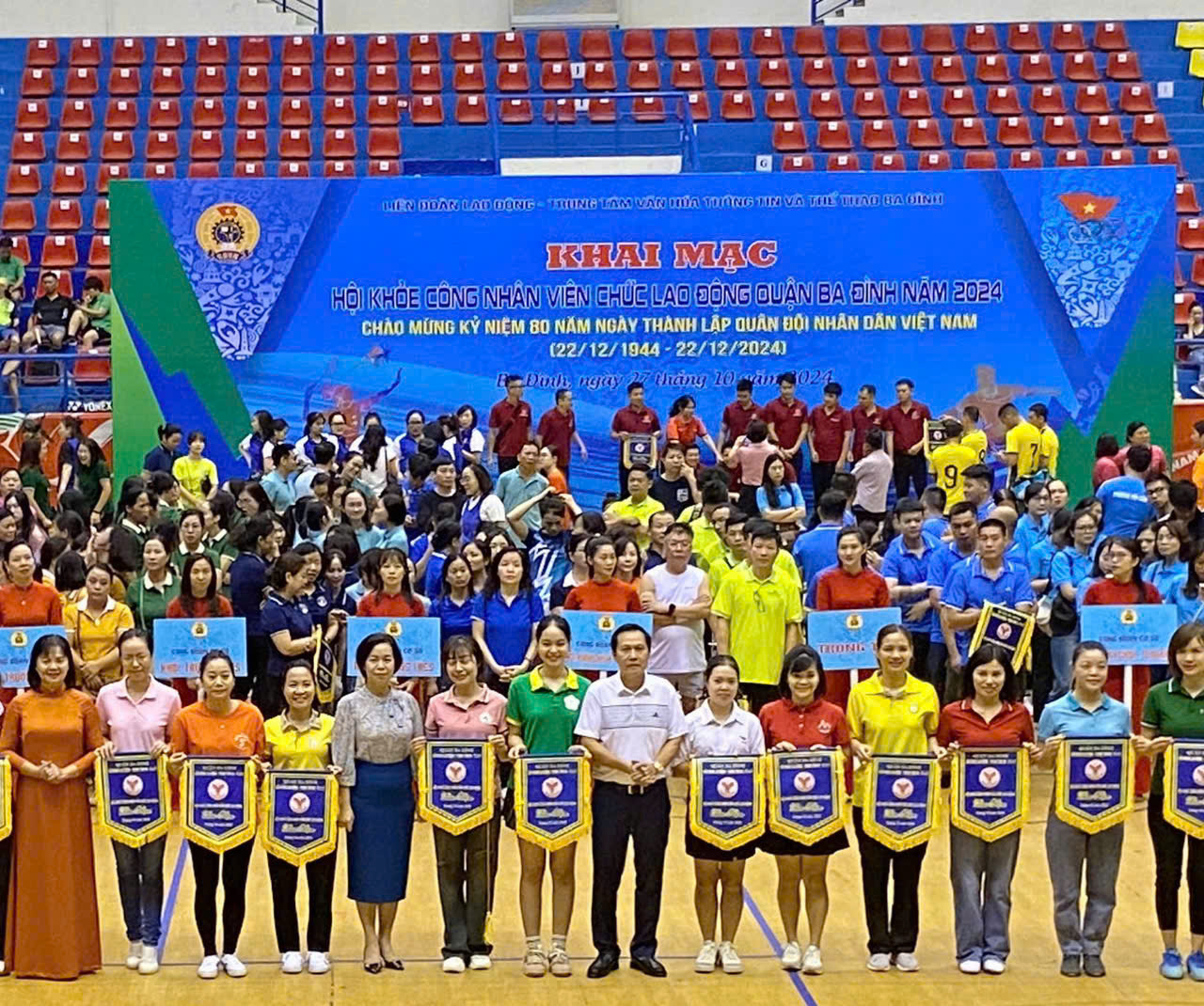 Sáng ngày 27/10/2024, tại Cung thể thao tổng hợp Quần Ngựa, Liên đoàn Lao động quận Ba Đình phối hợp với Trung tâm Văn hóa, Thông tin và Thể thao quận tổ chức khai mạc Hội khỏe Công nhân viên chức lao động quận Ba Đình năm 2024. Đây là hoạt động chào mừng kỷ niệm 80 năm Ngày thành lập Quân đội nhân dân Việt Nam (22/12/1944-22/12/2024).
