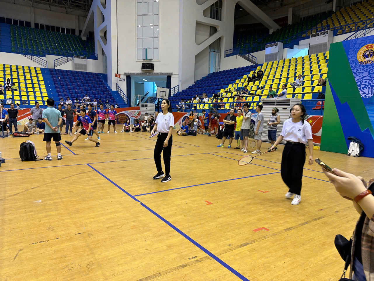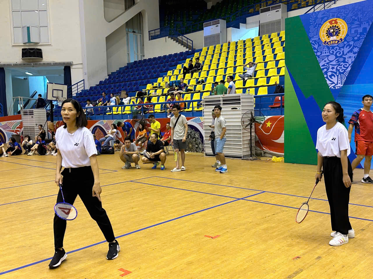 Hai công đoàn viên Thu Ban – Yến Nhi thi đấu nội dung Cầu lông.