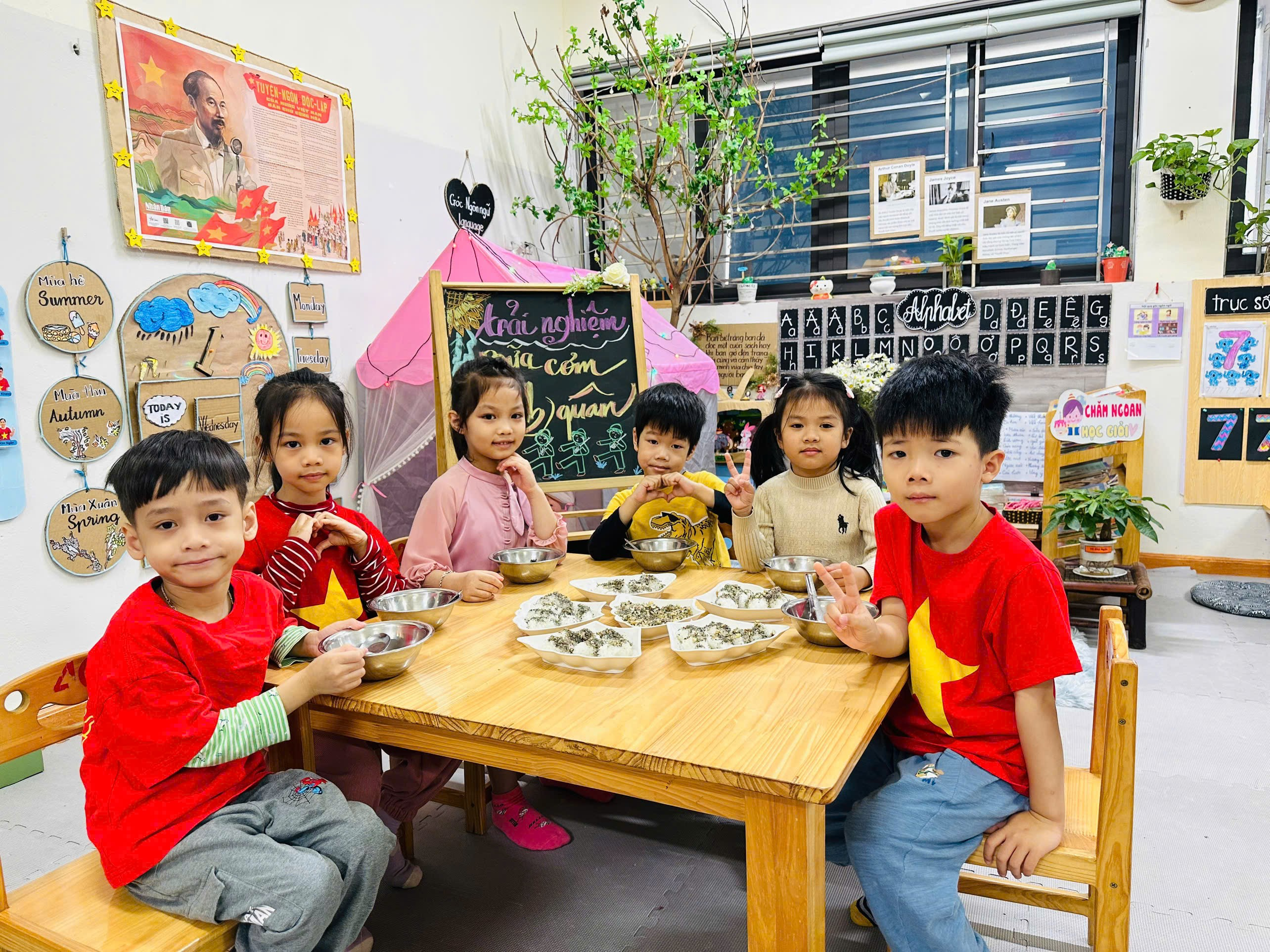 Những đôi bàn tay nhỏ nhắn, những ánh mắt háo hức, những nụ cười rạng rỡ đã tạo nên một hoạt động vừa vui tươi, vừa giàu ý nghĩa giáo dục. Qua đó, các con học được sự chia sẻ, trân trọng bữa ăn, đồng thời cảm nhận phần nào cuộc sống giản dị, vất vả nhưng đầy tình đồng đội của các chú bộ đội ngày xưa.