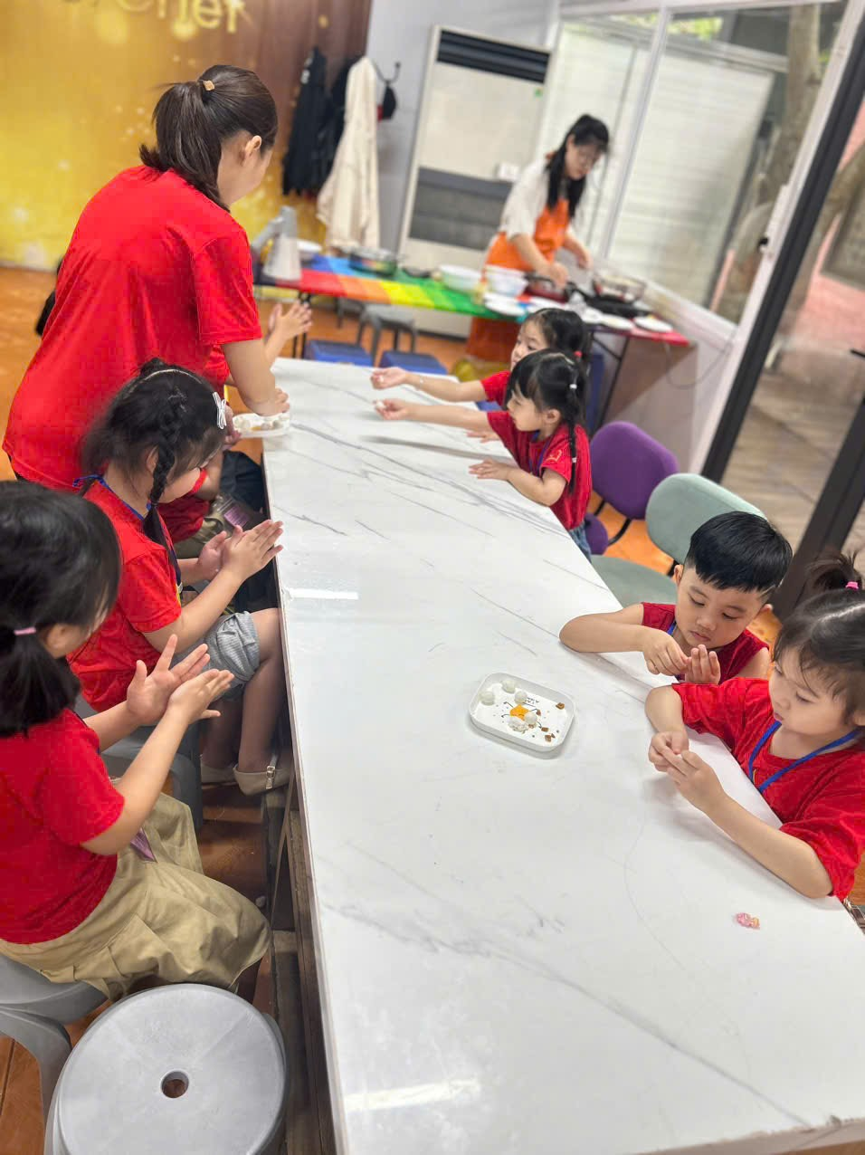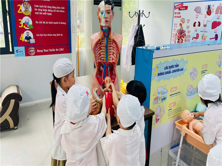 Tại "Công Viên Cầu Vồng”, các bé đã được tham gia với nhiều nội dung bổ ích, hấp dẫn như trải nghiệm tham quan “Khu vật nuôi” được tự tay cho các chú thú cưng ăn, thực hành cách trồng rau mầm, tham gia chơi các trò chơi lý thú, hấp dẫn như trượt cỏ, hay các trò chơi dân gian: kéo co... Bên cạnh đó, các bé còn được tập làm “Đầu bếp nhí” tham gia chế biến các món ăn đầy hấp dẫn.....Và hào hứng nhất đó là các bé được trải nghiệm hoạt động: Tập làm chú Lính Cứu Hỏa diễn tập các trường hợp cháy có thể xảy ra hay đóng làm các Bác sỹ, Y tá khám chữa bệnh cho mọi người... khiến các bé cảm thấy vô cùng hứng thú khi tham gia hoạt động...