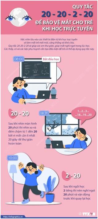 Dịch COVID-19 đang làm thay đổi các hoạt động văn hóa - giáo dục trên toàn cầu, hình thức học trực tuyến ngày càng trở nên phổ biến hơn. Tuy nhiên, các chuyên gia y tế cảnh báo việc học tập thông qua các thiết bị điện tử trong nhiều giờ đồng hồ cũng tiềm ẩn nhiều nguy cơ gây hại đến mắt của học sinh