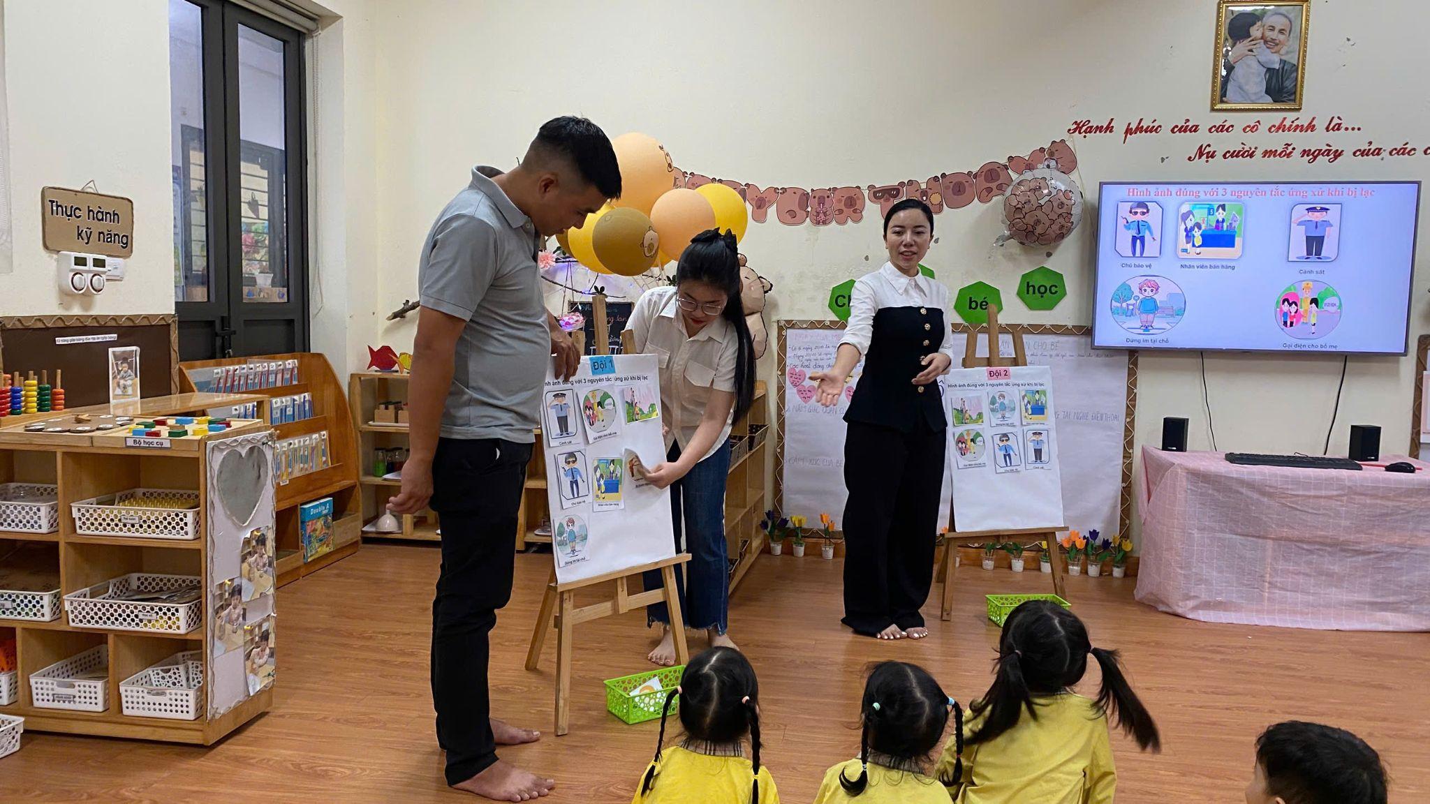 Kết thúc buổi học, phụ huynh cùng các con đã biết được một số nguyên tắc ứng xử khi bị lạc. Điều quan trọng hơn là tinh thần kết nối giữa nhà trường, phụ huynh và các con ngày càng gắn kết, giúp các con có những kĩ năng khi ra ngoài