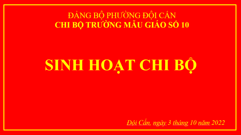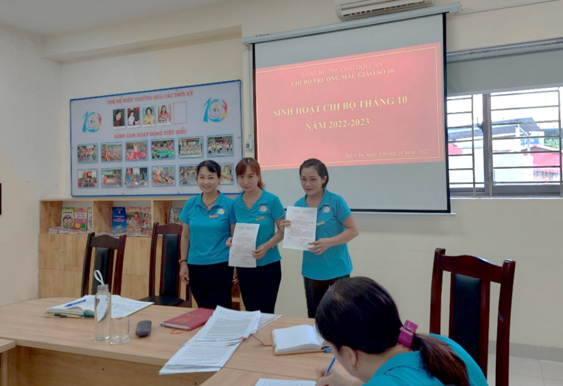 Chiều ngày 3 tháng 10 năm 2022, Chi bộ Mẫu giáo Số 10 đã tổ chức sinh hoạt chi bộ tháng 10 năm 2022 nhằm đánh giá công tác xây dựng Đảng tháng 9/2022 và đề ra phương hướng nhiệm vụ công tác xây dựng Đảng tháng 10/2022. Đây cũng là buổi sinh hoạt chi bộ đầu tiên sau Đại hội chi bộ Mẫu giáo số 10 nhiệm kỳ 2022-2025; buổi sinh hoạt đã triển khai các nội dung đúng trọng tâm và nhận được sự nhất trí cao của các đảng viên trong chi bộ Mẫu giáo Số 10.