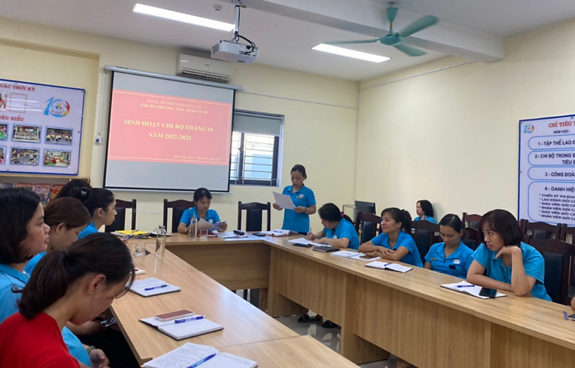 Tiếp đó, đồng chí Trần Thị Mai Anh – Bí thư chi bộ đã thông qua Báo cáo công tác xây dựng Đảng tháng 9/2022 và phương hướng, nhiệm vụ công tác tháng 10/2022. Bản báo cáo rất chi tiết và cụ thể với 3 nhiệm vụ trọng tâm: Công tác xây dựng Đảng; công tác lãnh đạo chính quyền và công tác lãnh đạo toàn thể. Trong công tác tháng 10, mặc dù có rất nhiều chương trình và kế hoạch nhưng đồng chí Bí thư đã luôn khích lệ, động viên các Đảng viên thực hiện tốt và nghiêm túc trong quá trình triển khai, nếu có khó khăn xin ý kiến đề xuất để Cấp ủy chi bộ sẽ chỉ đạo Ban giám hiệu nhà trường giúp đỡ và cùng tháo gỡ.