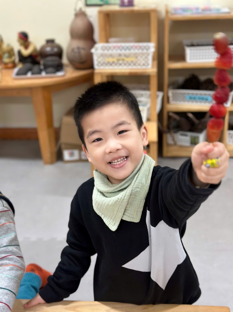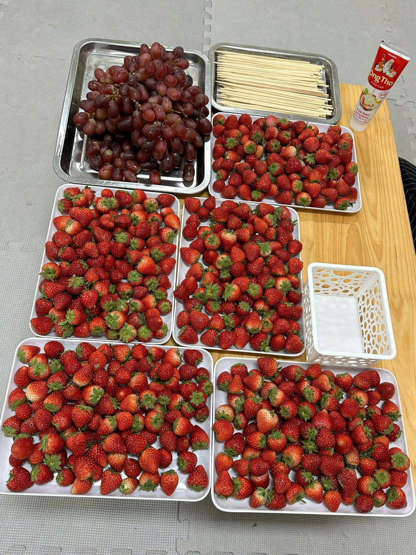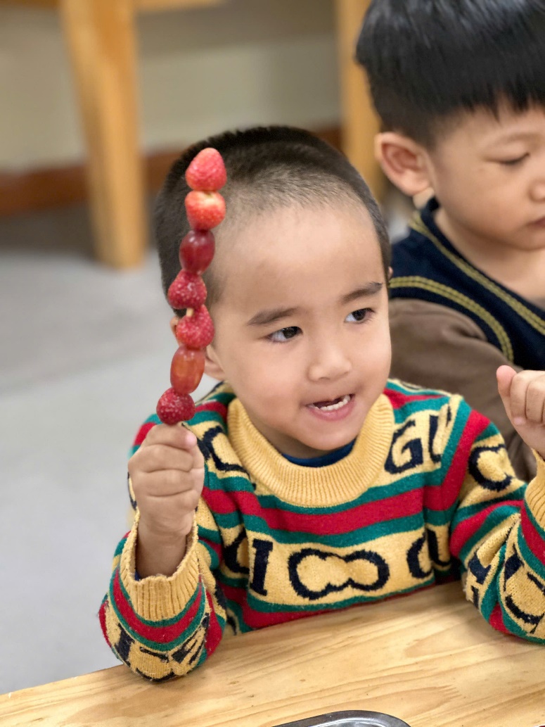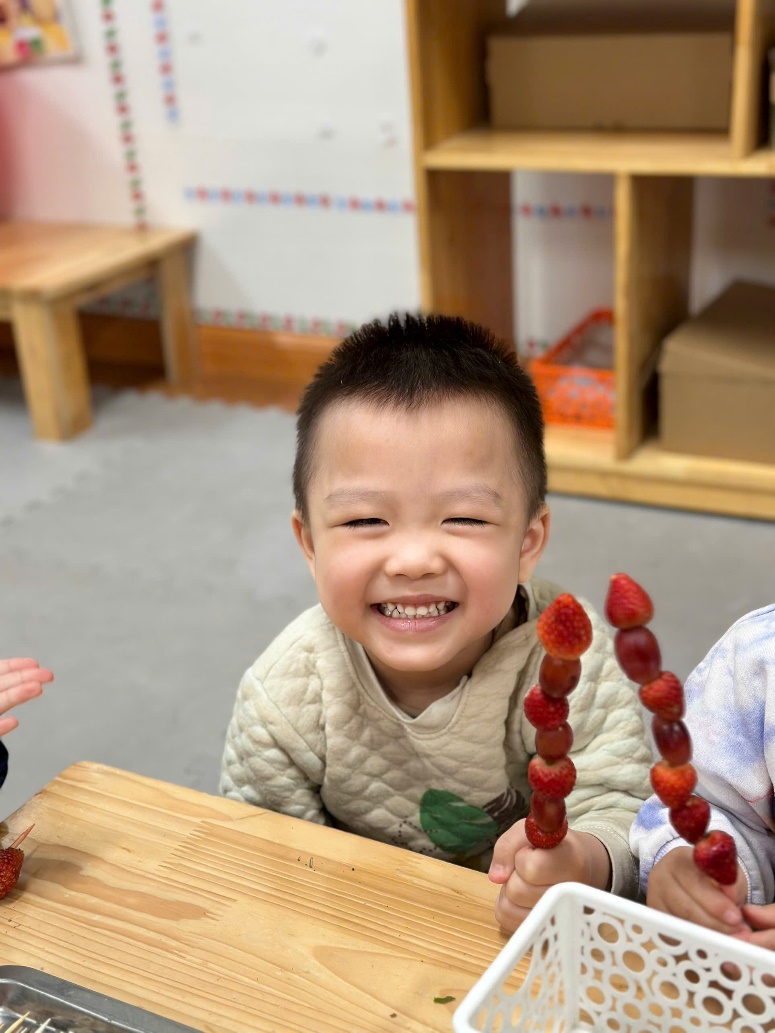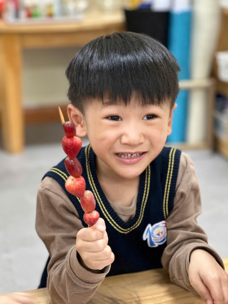 Những nụ cười hành phúc khi mình đã tự tay làm được thành quả một xiên hoa quả theo đúng cách sắp xếp theo quy tắc
