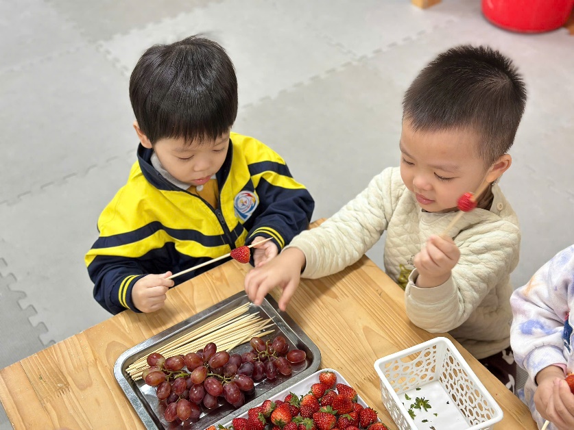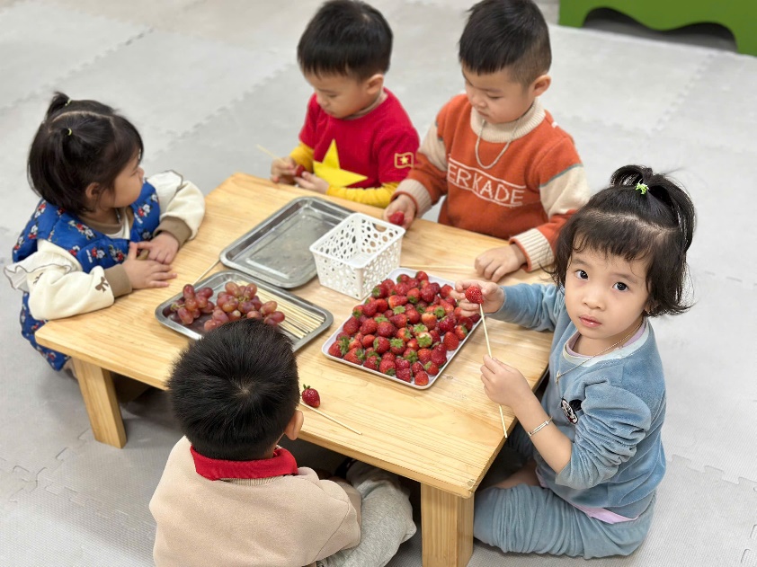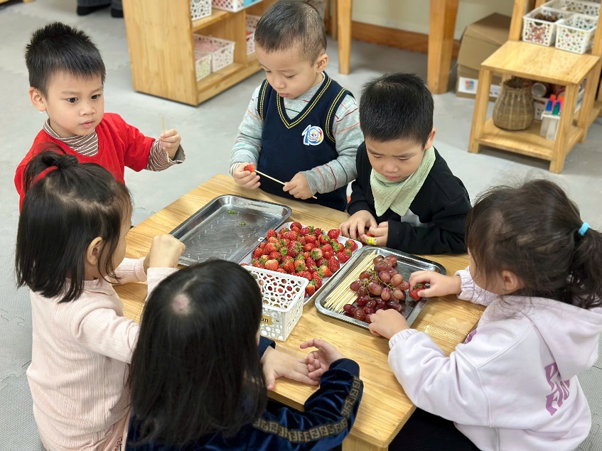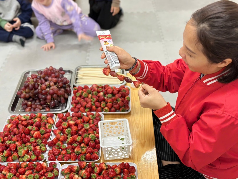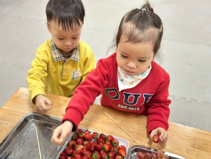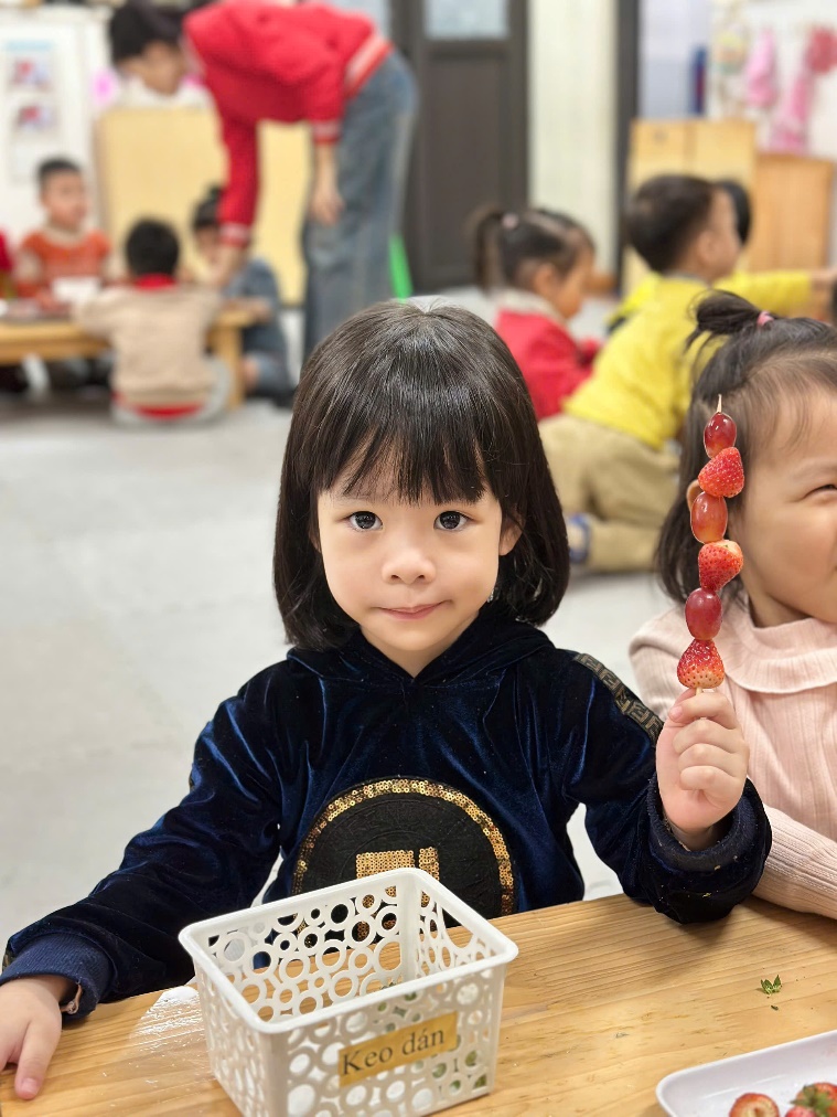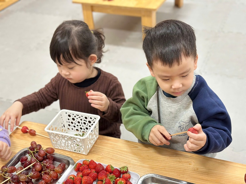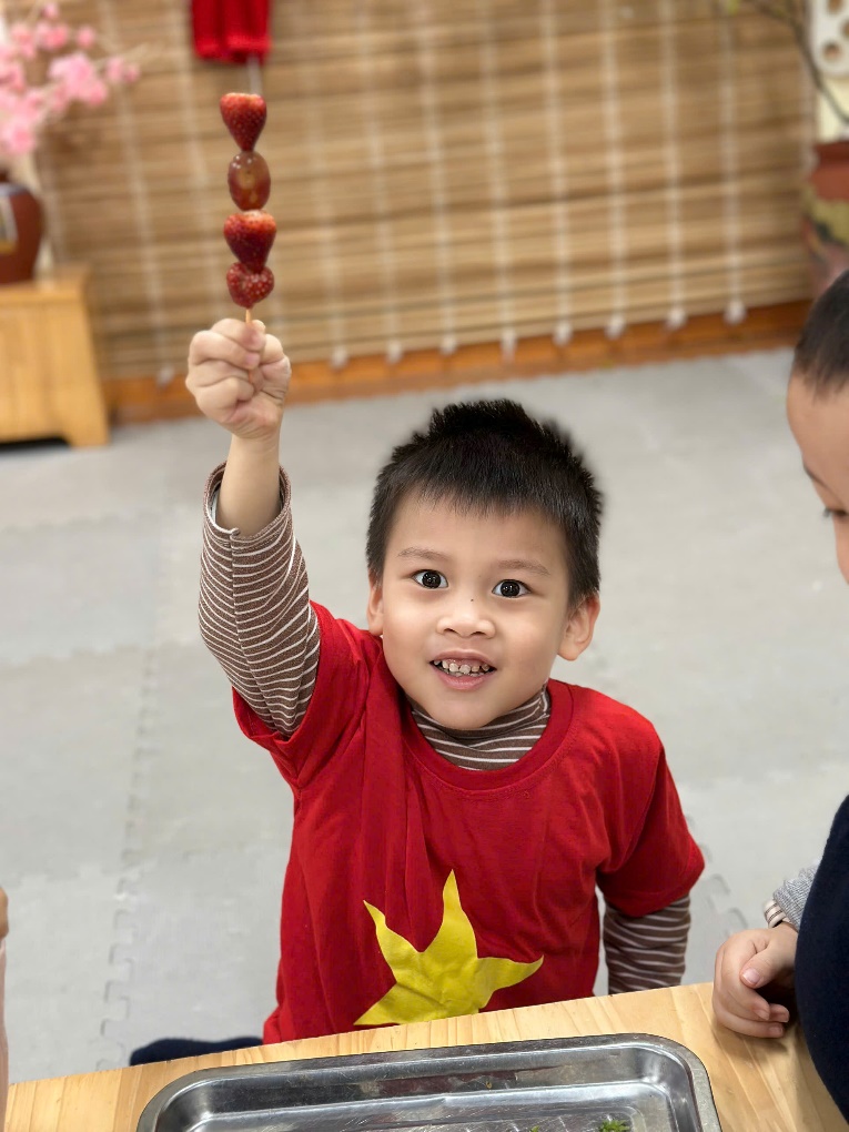 Các bé lớp C3 Hào hứng tham gia hoạt động trải nghiệm "Làm hoa quả xiên"