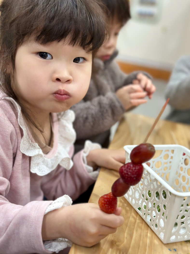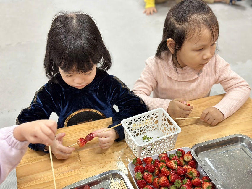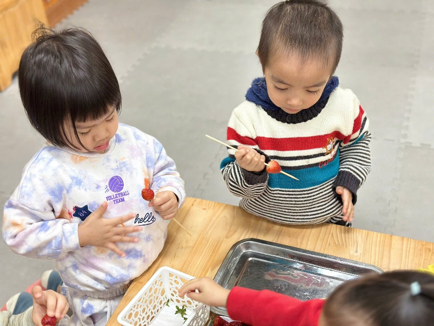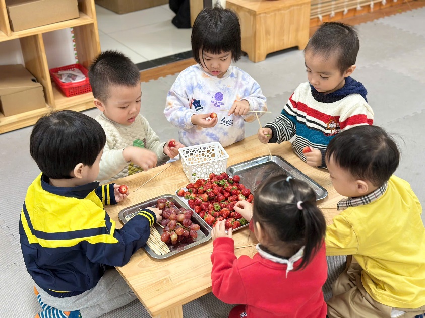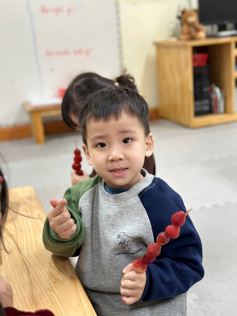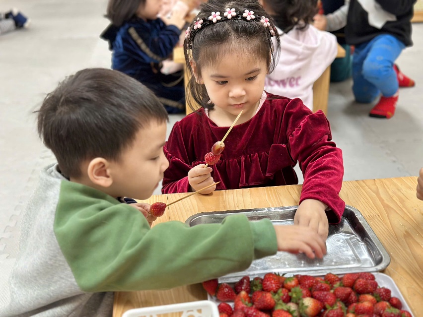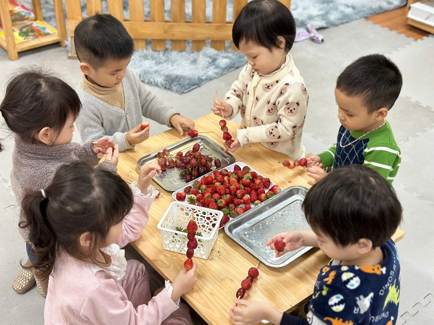 Các bé lớp C3 Hào hứng tham gia hoạt động trải nghiệm "Làm hoa quả xiên"