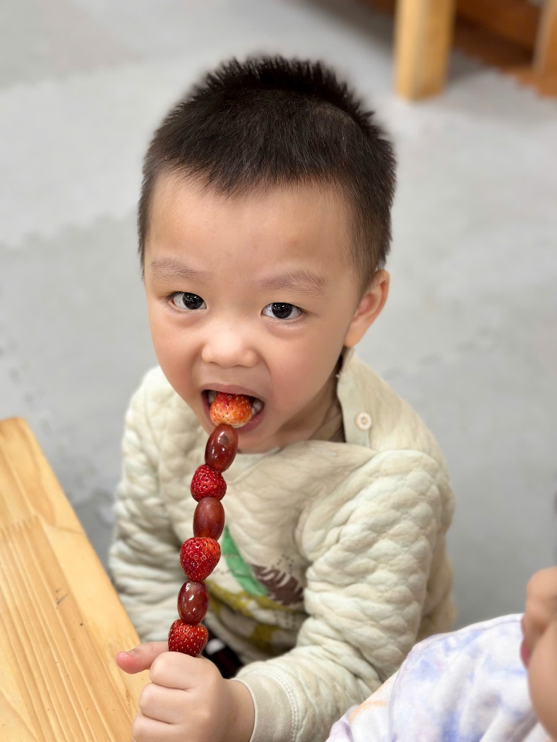 1 quả dâu rồi 1 quả dâu tây: Xiên hoa quả của con thật ngon!