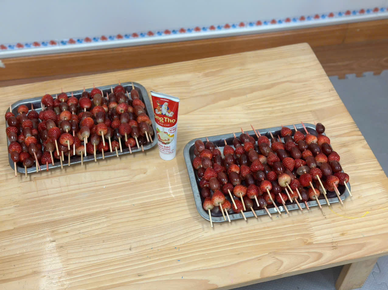 Cùng nhau tự tay xiên những xiên hoa quả thật ngon và đẹp mắt