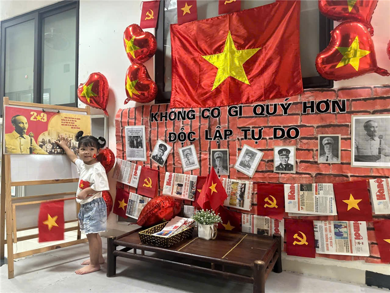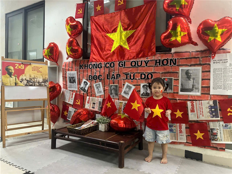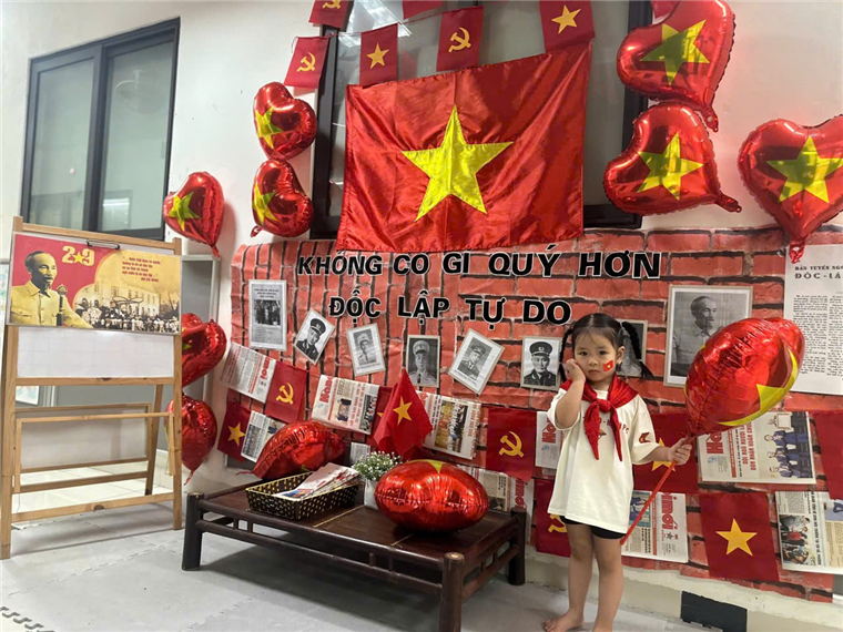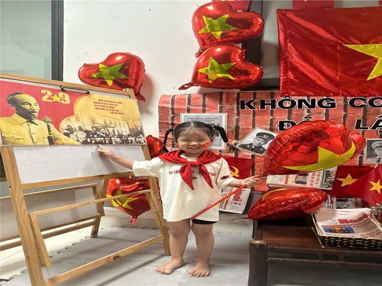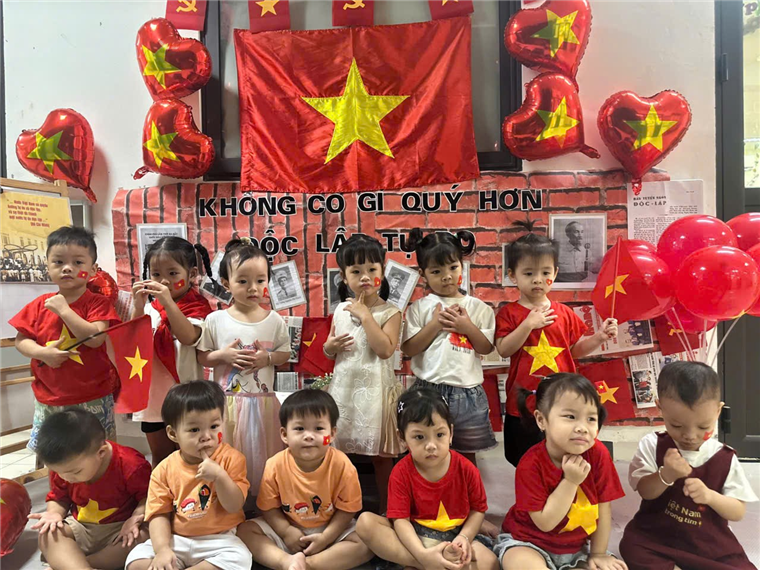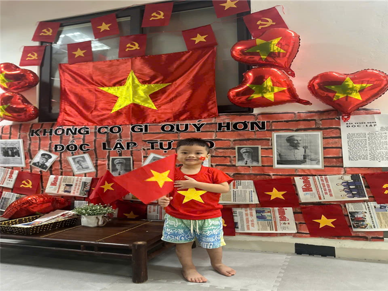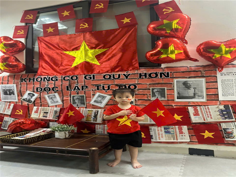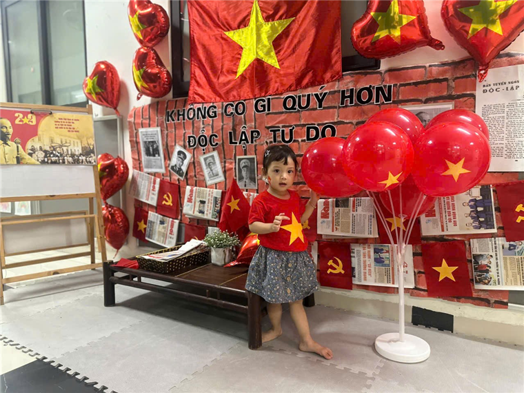 Dưới đây là một số hình ảnh của các bạn nhỏ lớp Nhà trẻ D1 khi được tham gia hoạt động hưởng ứng ngày lễ trọng đại của dân tộc: