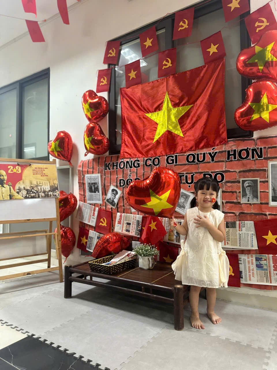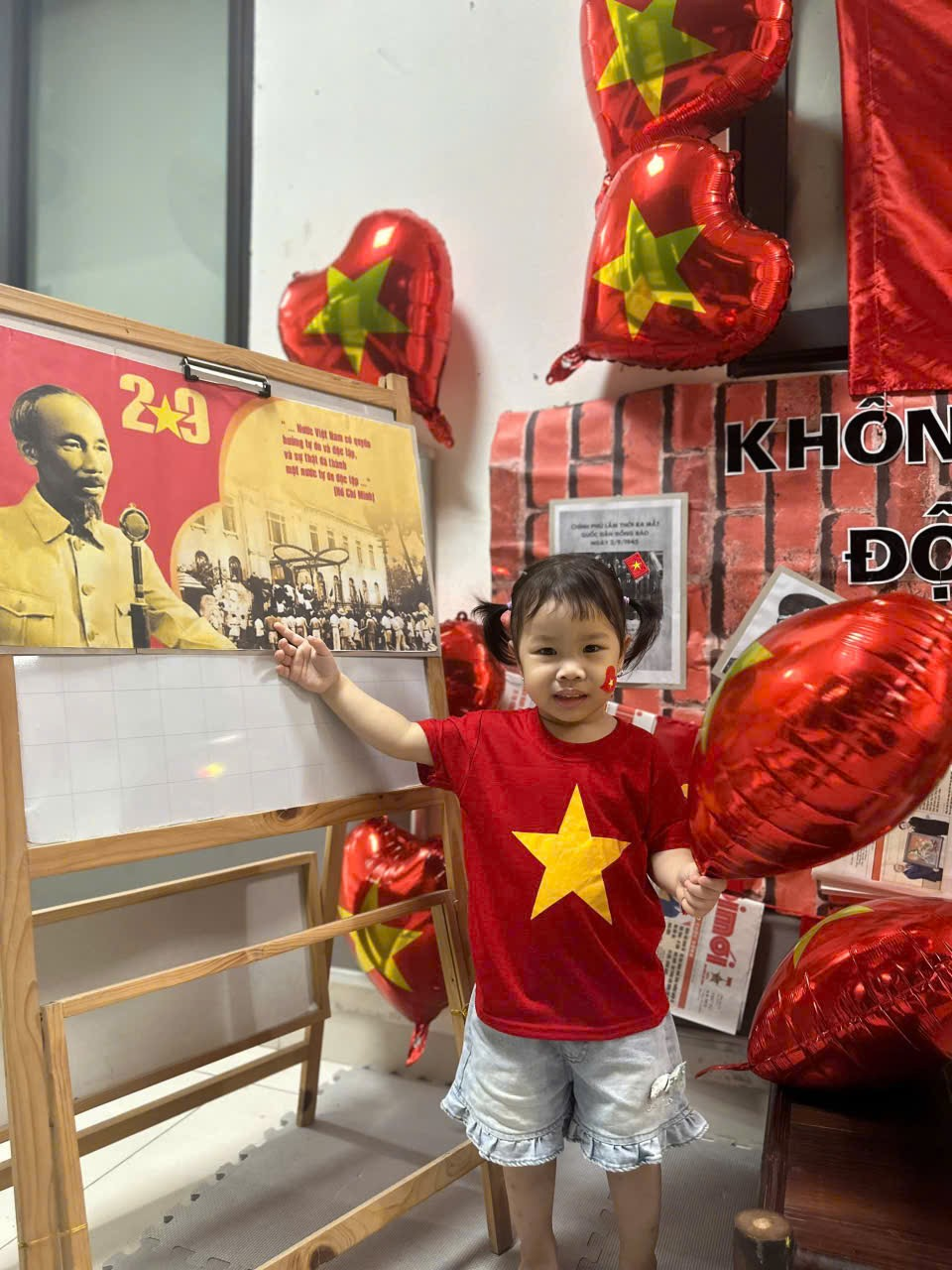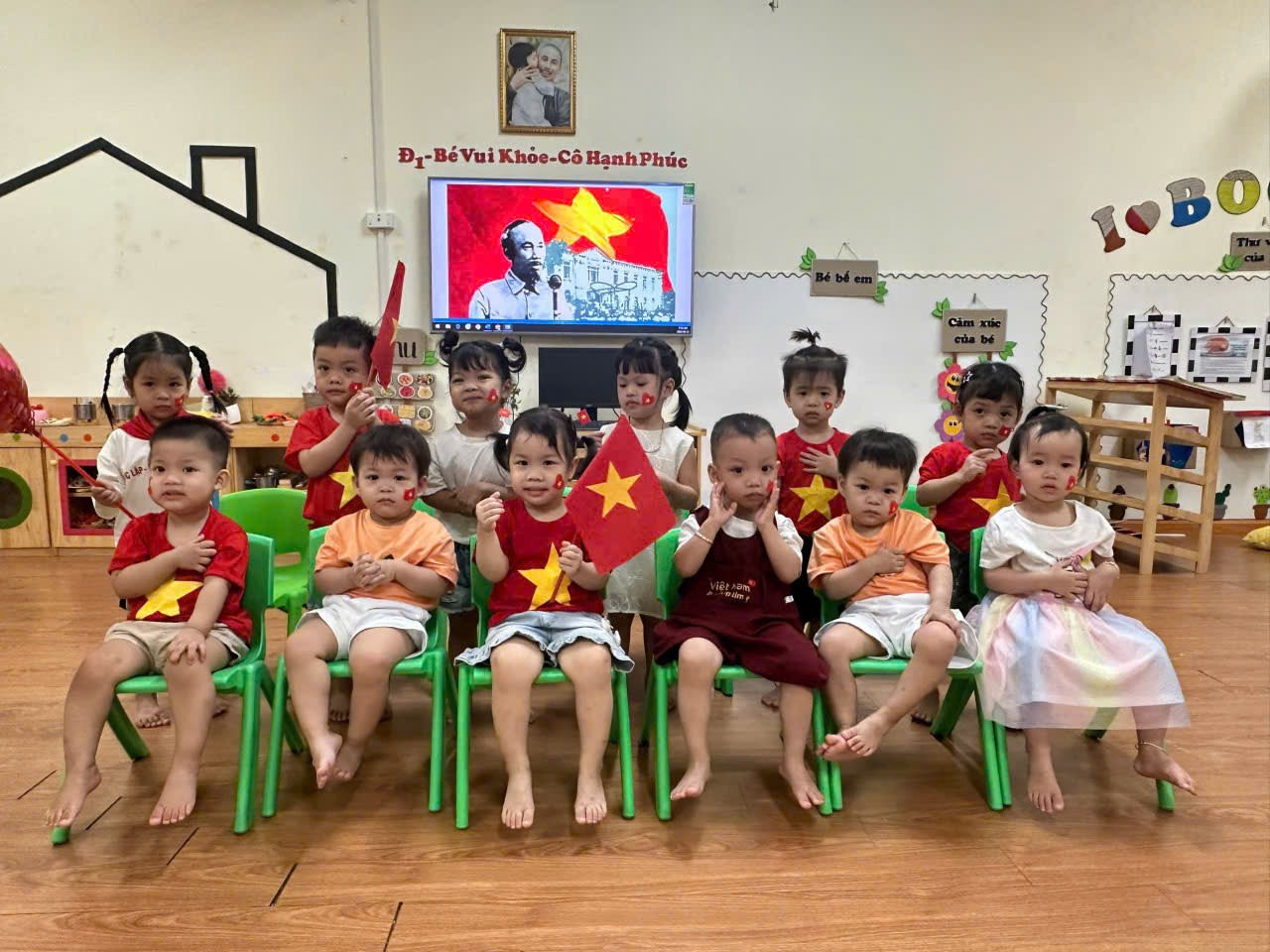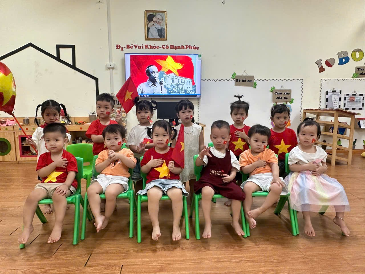 Dưới đây là một số hình ảnh của các bạn nhỏ lớp Nhà trẻ D1 khi được tham gia hoạt động hưởng ứng ngày lễ trọng đại của dân tộc: