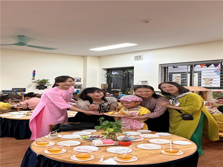 Bố mẹ và các con cùng bày bàn tiệc chia sẻ những sản phẩm của nhóm mình ạ!