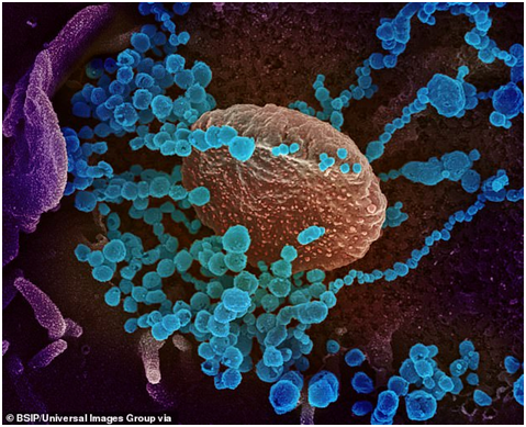 Hình ảnh trên kính hiển vi của một tế bào virus SARS-CoV-2. Ảnh: BSIP