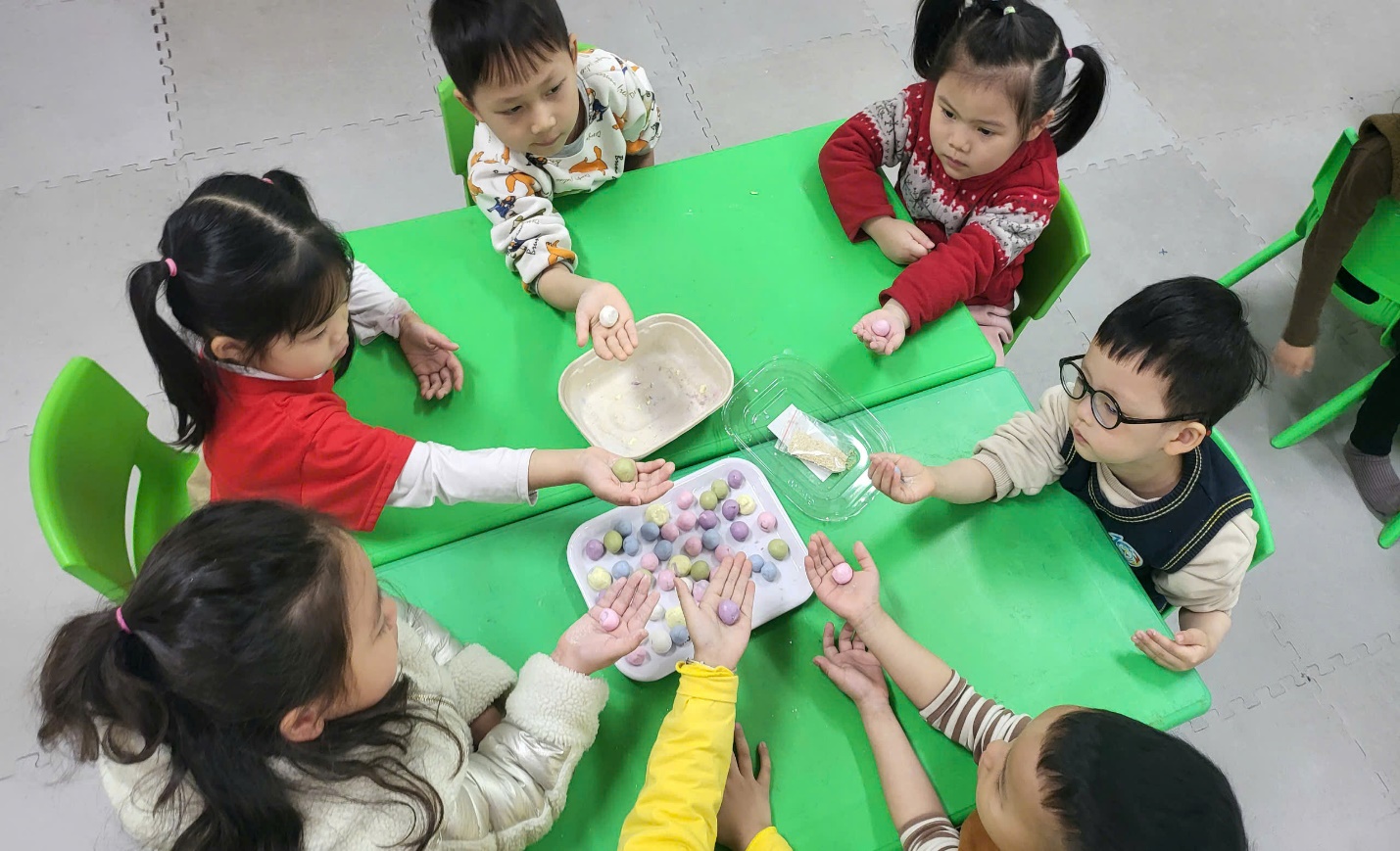 Những viên bánh tròn xinh xắn được nặn từ những đôi bàn tay đáng yêu của bé, được bé nâng niu và trân trọng biết bao vì đó chính là thành quả lao động miệt mài của các bé.