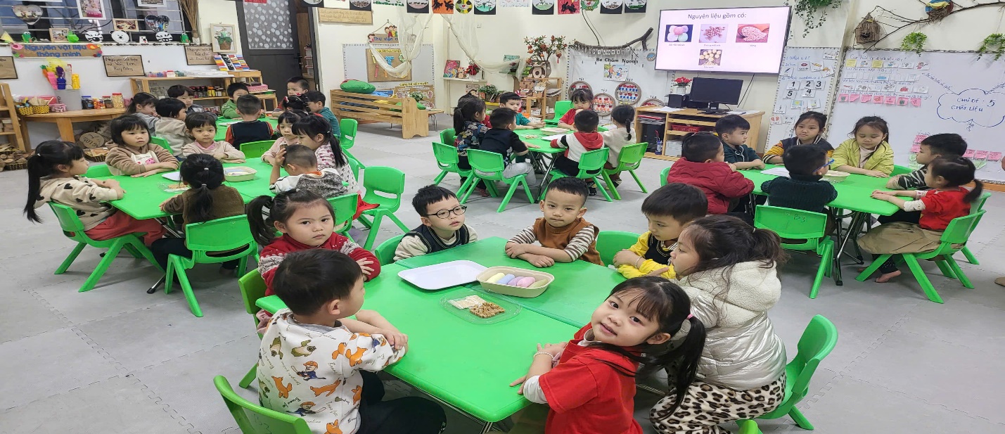Các bé cùng nhau thưởng thức thành quả mình làm ra thật là vui.
