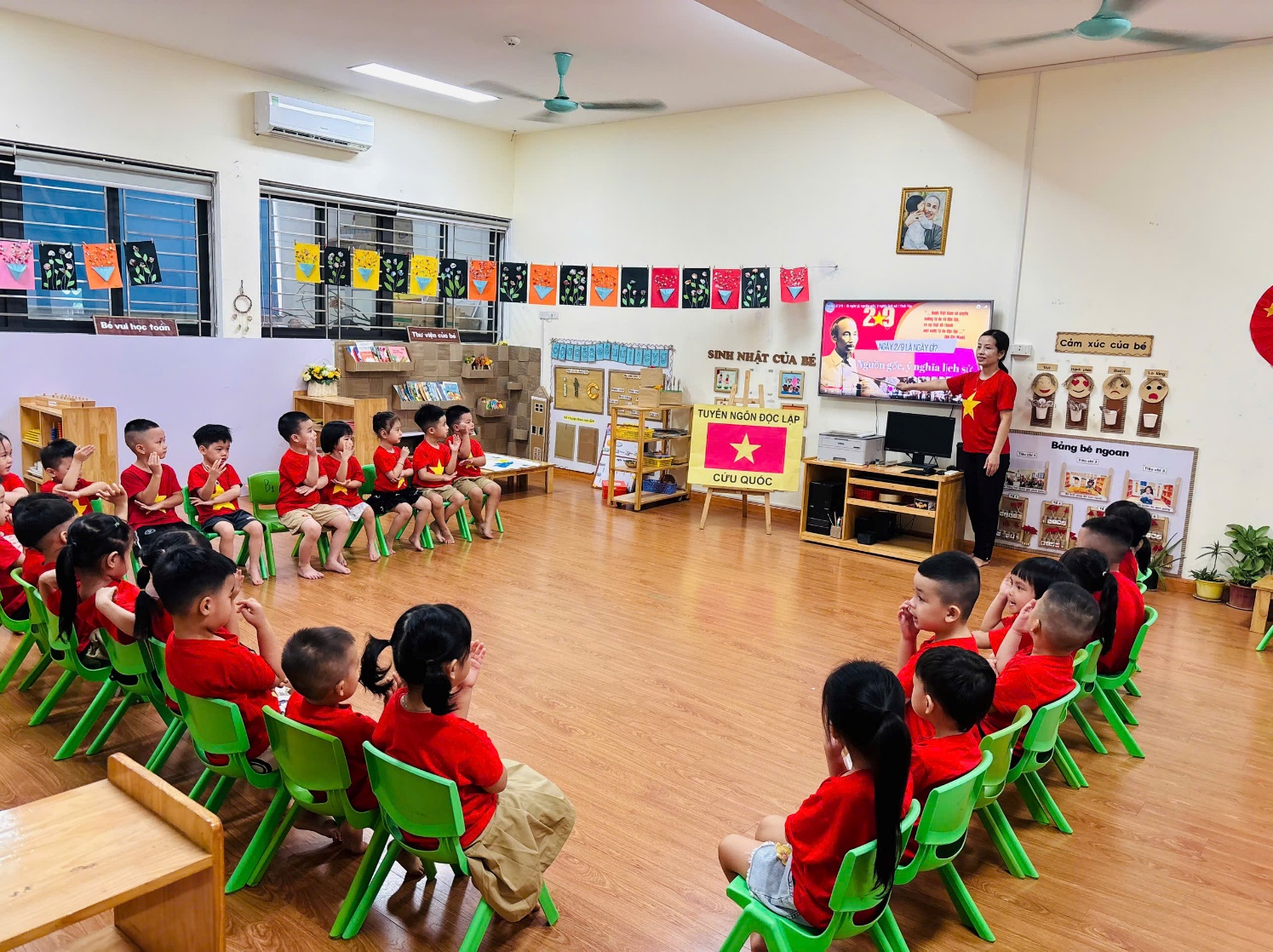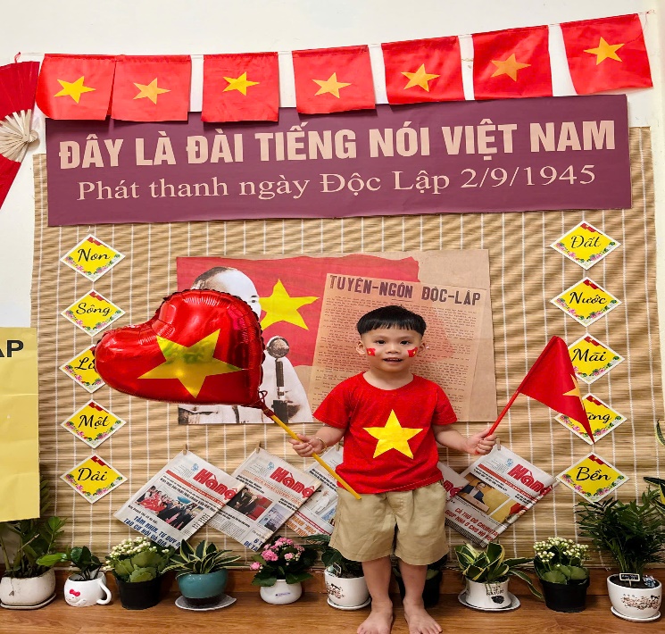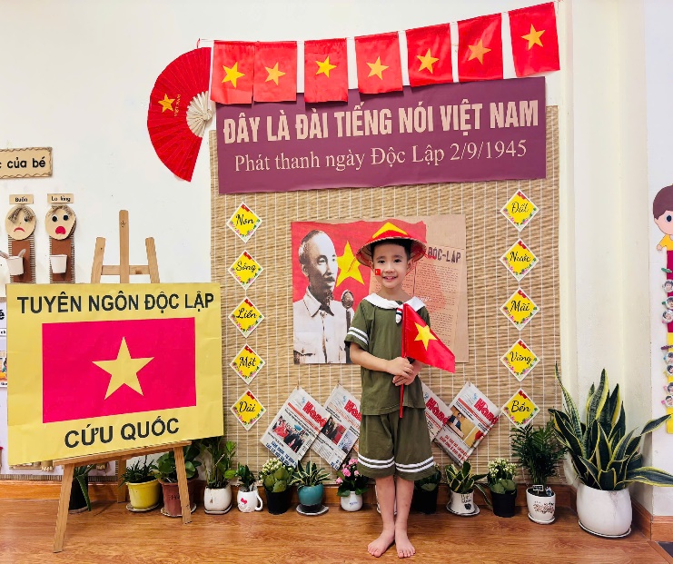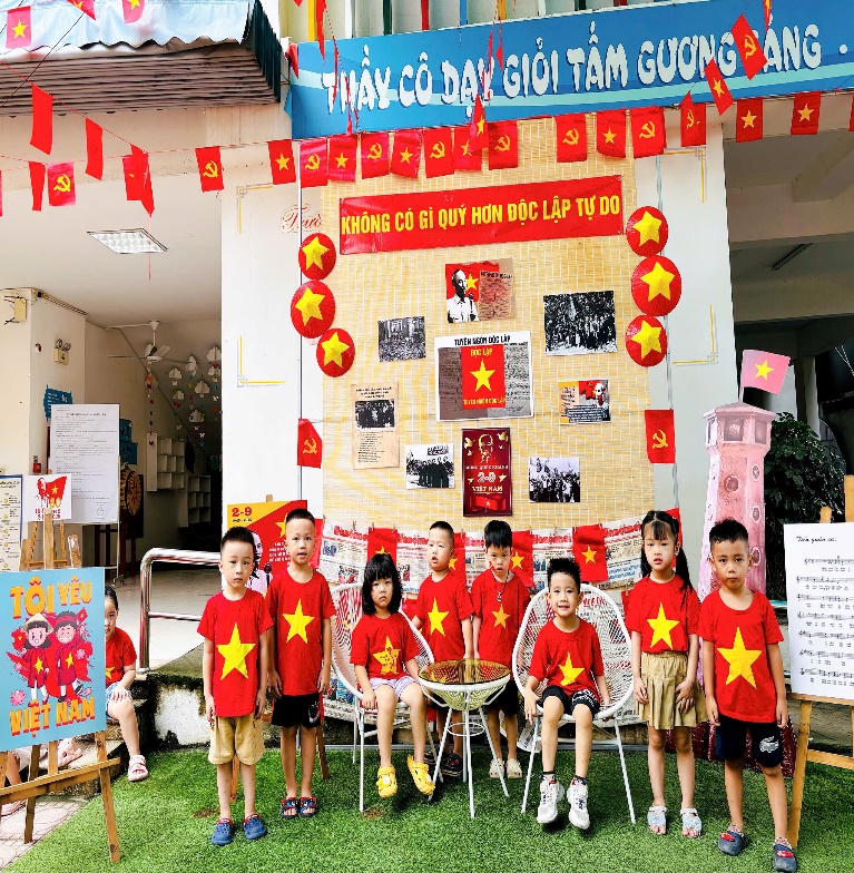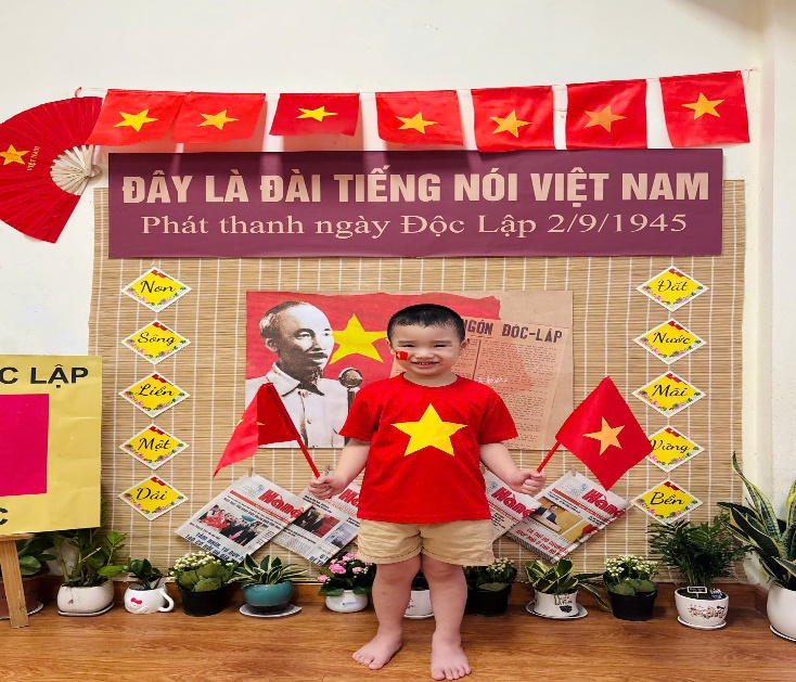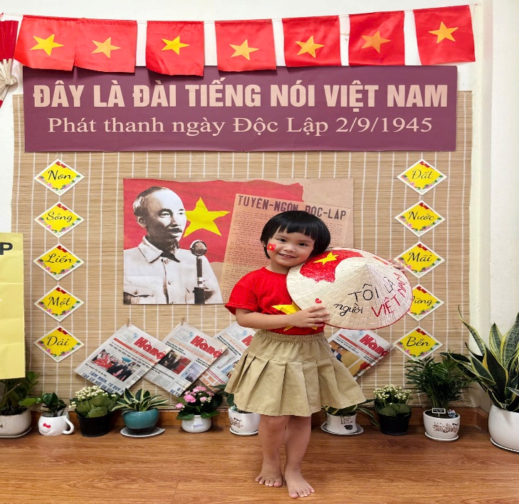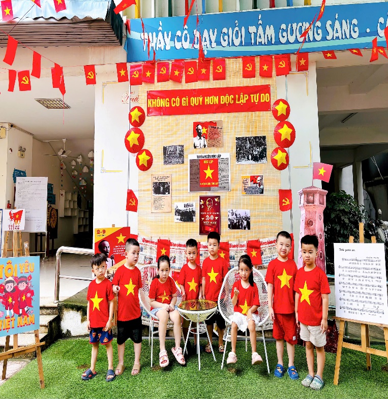 Tại lớp học, các con được tham gia nhiều hoạt động sôi nổi và bổ ích như: Tìm hiểu về ngày 2/9, các cô đã giúp các con hiểu được ý nghĩa lịch sử của Ngày Quốc khánh, khi Bác Hồ đọc Tuyên ngôn Độc lập, khai sinh ra nước Việt Nam Dân chủ Cộng hòa.