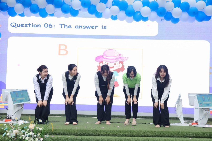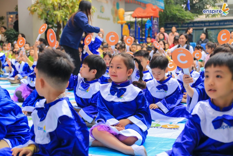 Với sự đồng hành của giáo viên nước ngoài và giáo viên trung tâm tiếng anh Ensprie, sân chơi lồng ghép các câu hỏi Tiếng Anh đơn giản giúp các con làm quen với ngôn ngữ thứ hai một cách thú vị. Đây cũng là cơ hội để giúp các con được ôn tập và vận dụng kiến thức đã học 1 cách tự nhiên để đánh giá kiến thức tổng hợp. Các câu hỏi yêu cầu trẻ phải tư duy và phản xạ nhanh giúp các con nâng cao sự tập trung và xử lý thông tin nhanh nhạy. Đặc biệt các con được đưa ra quyết định và trả lời trước đám đông, đây là bước đệm quan trọng giúp trẻ mạnh dạn, tự tin hơn trong rất nhiều hoạt động.