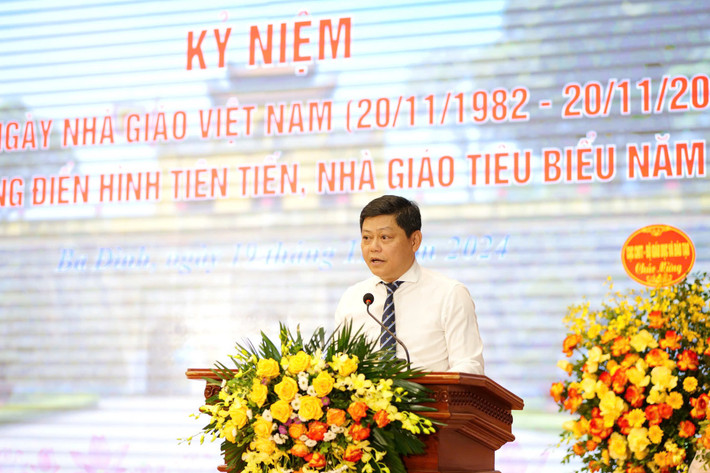 Phó Bí thư Quận uỷ, Chủ tịch Uỷ ban nhân dân quận Ba Đình Tạ Nam Chiến phát biểu chỉ đạo tại lễ kỷ niệm 42 năm Ngày Nhà giáo Việt Nam 20.11