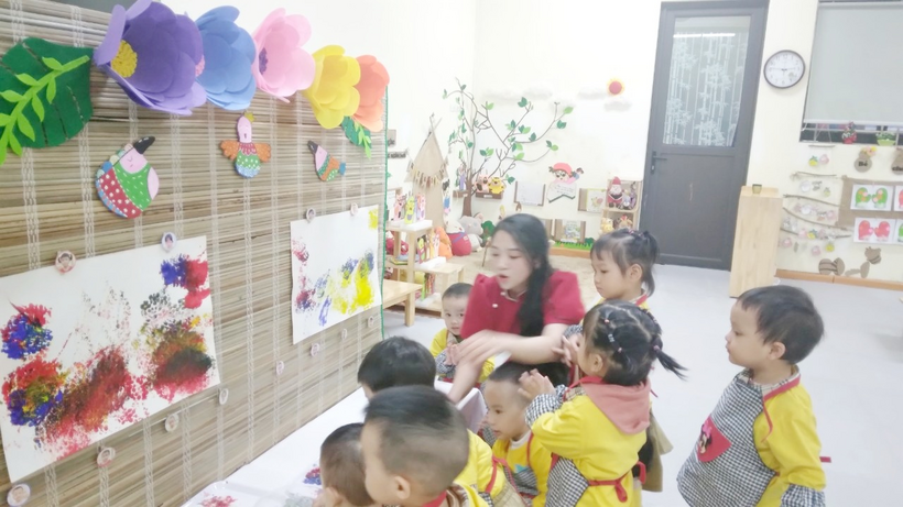 2.Cô Nguyễn Thị Trang (áo hoa đỏ) giáo viên lớp D2