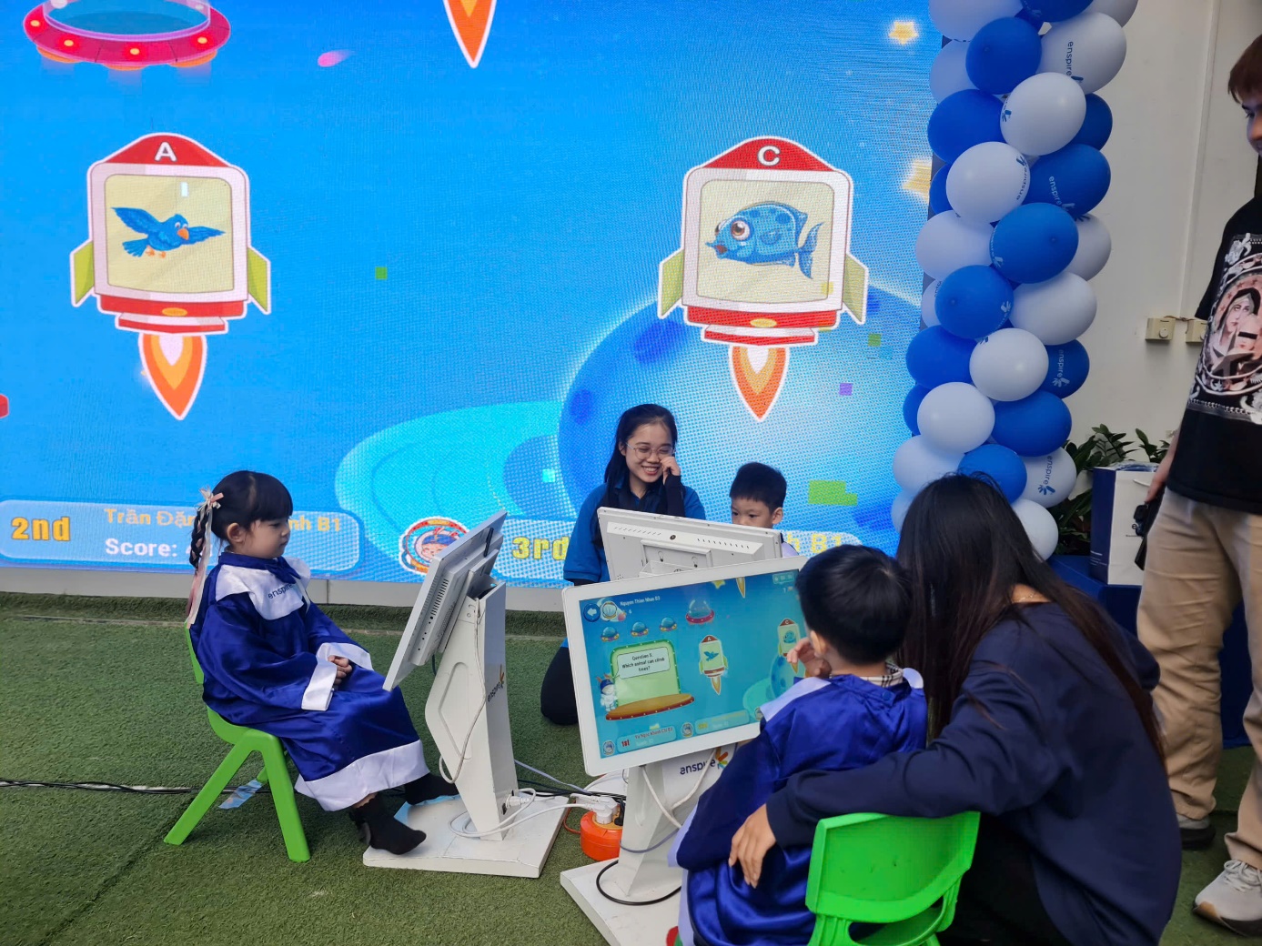 Mục tiêu của ngày hội không chỉ là để các bé làm quen, thực hành tiếng Anh một cách tự nhiên mà còn là cơ hội để các con thể hiện sự tự tin, tinh thần đồng đội và kiến thức đã học một cách vui vẻ nhất. Với không khí sôi động, những câu hỏi tiếng Anh vui nhộn và những phần quà hấp dẫn, ngày hội đã thực sự mang đến một trải nghiệm khó quên cho các tài năng nhí!