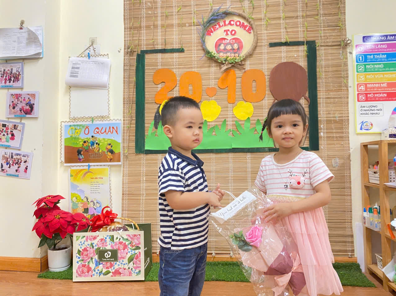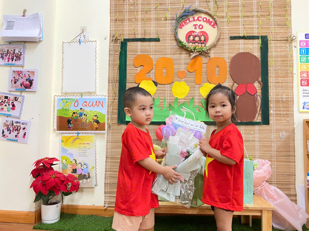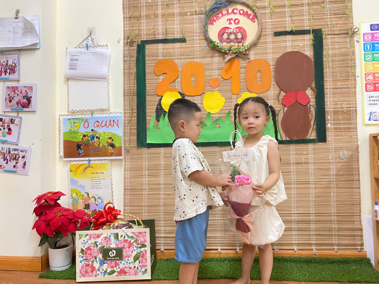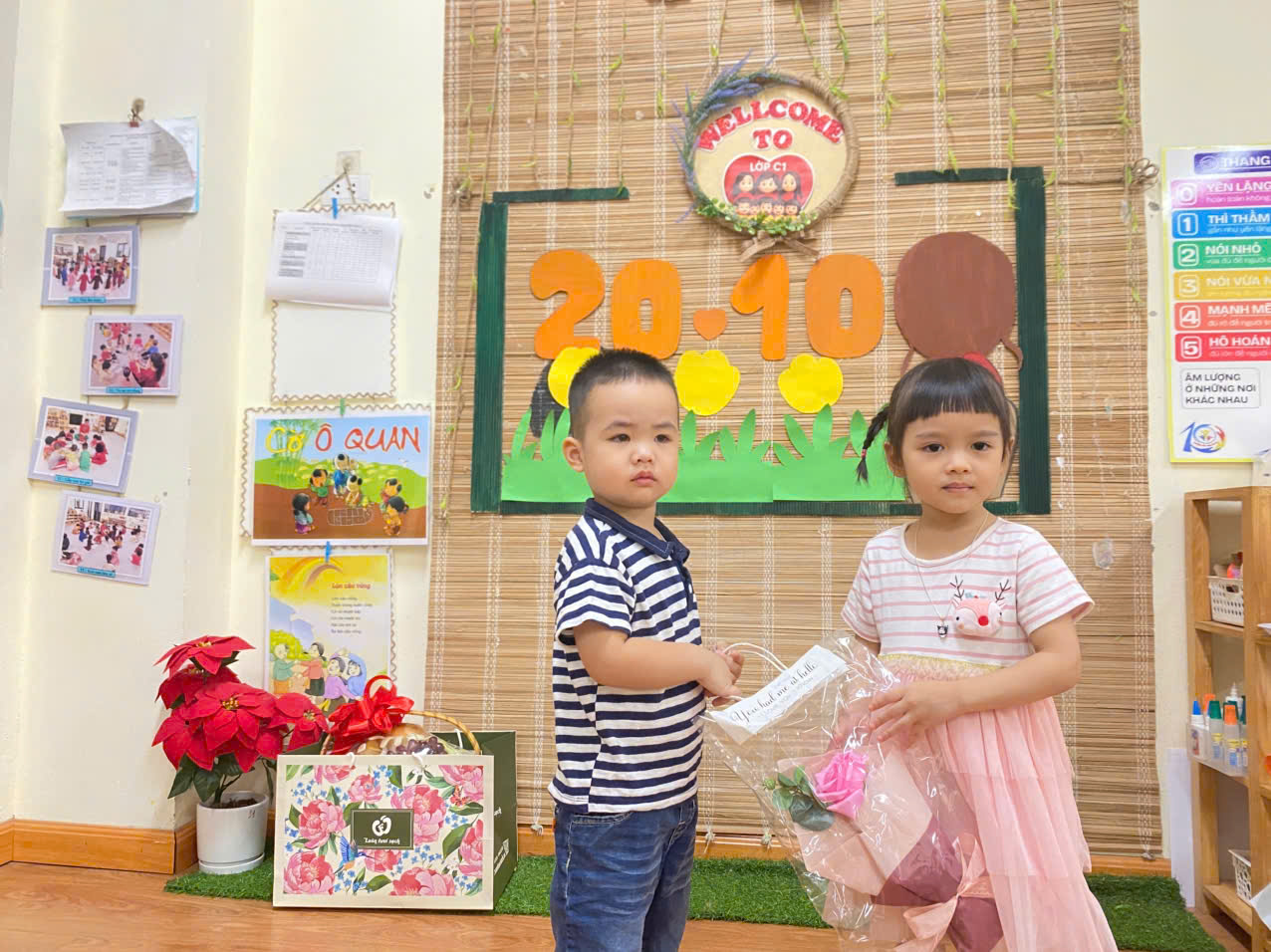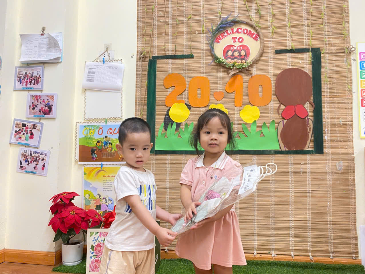 Dưới đây là một số hình ảnh của các con lớp mẫu giáo bé C1 trong chuỗi hoạt động 20/10