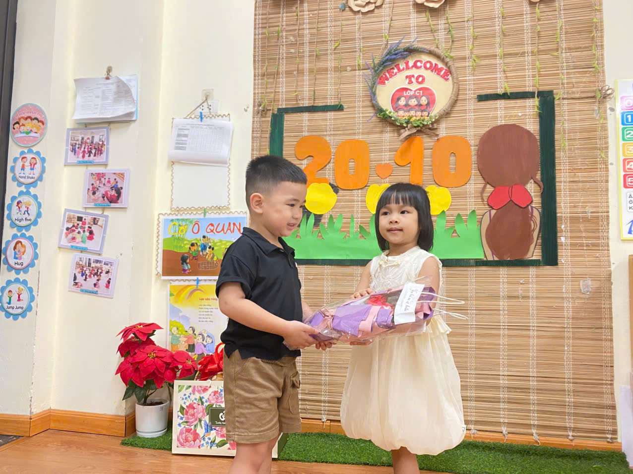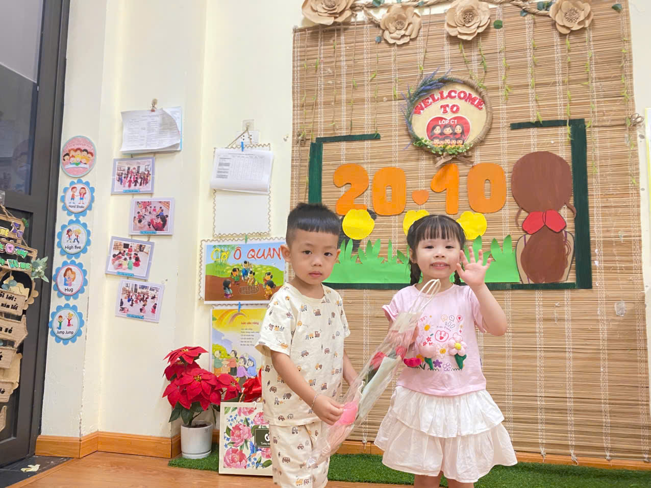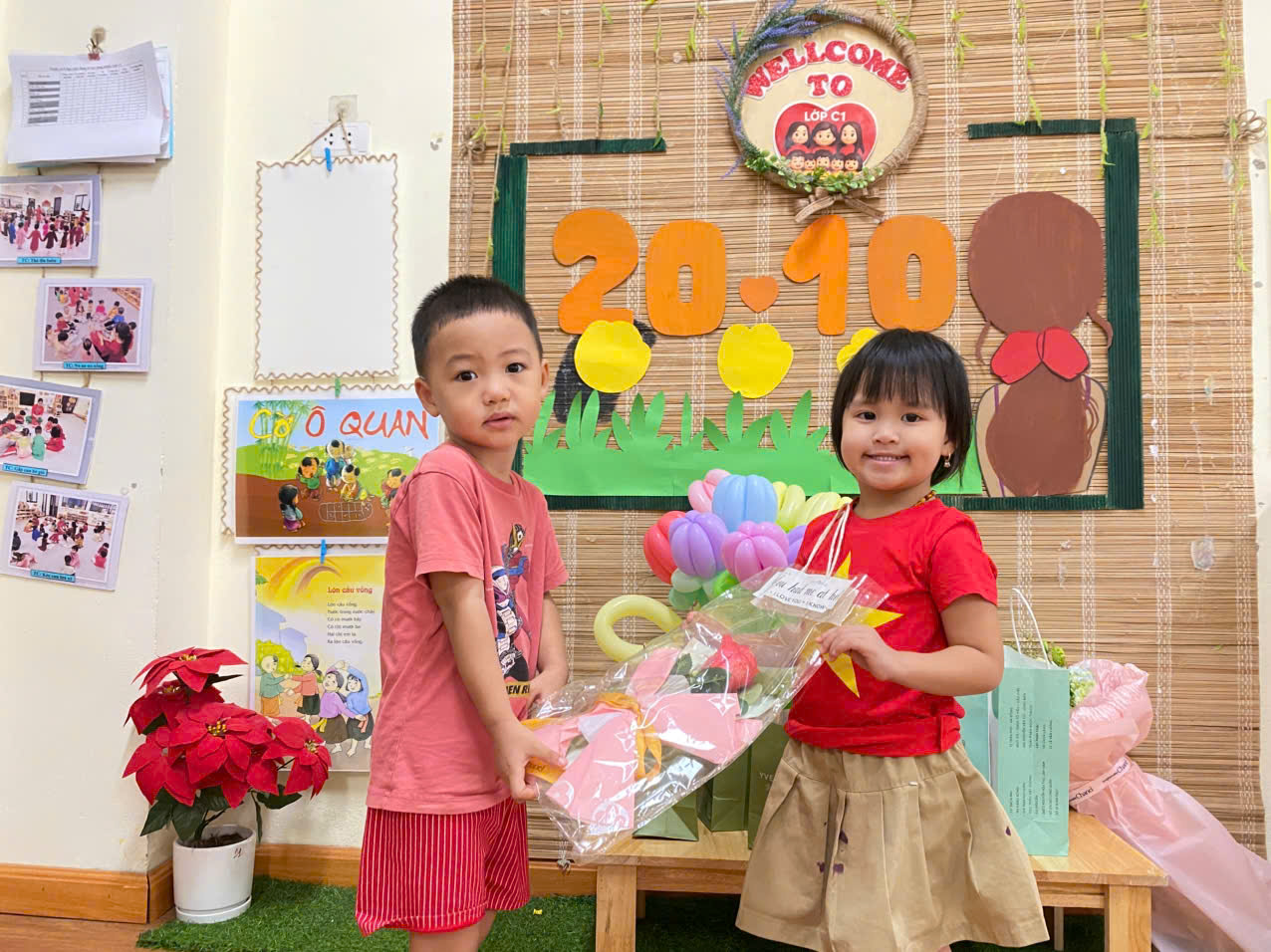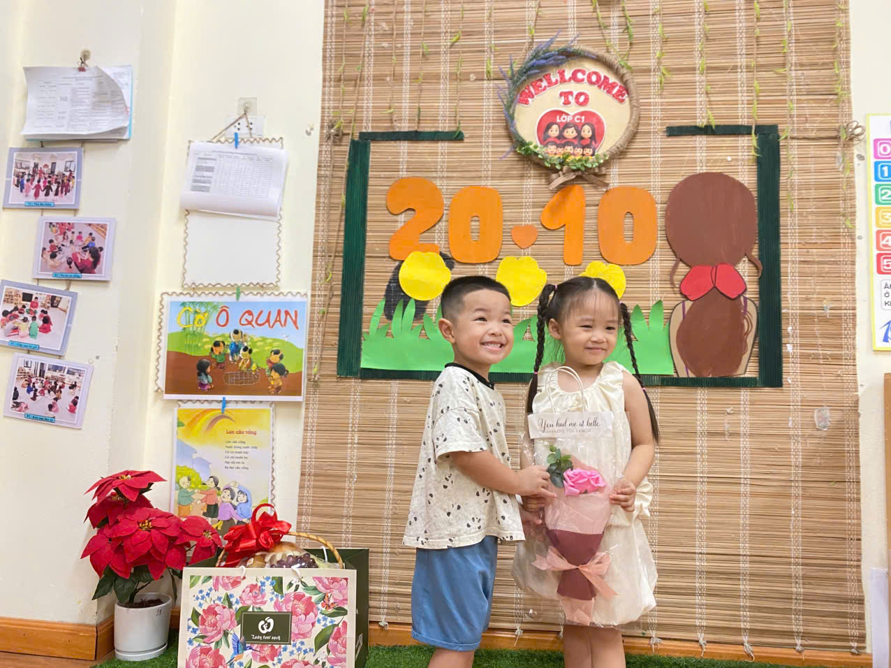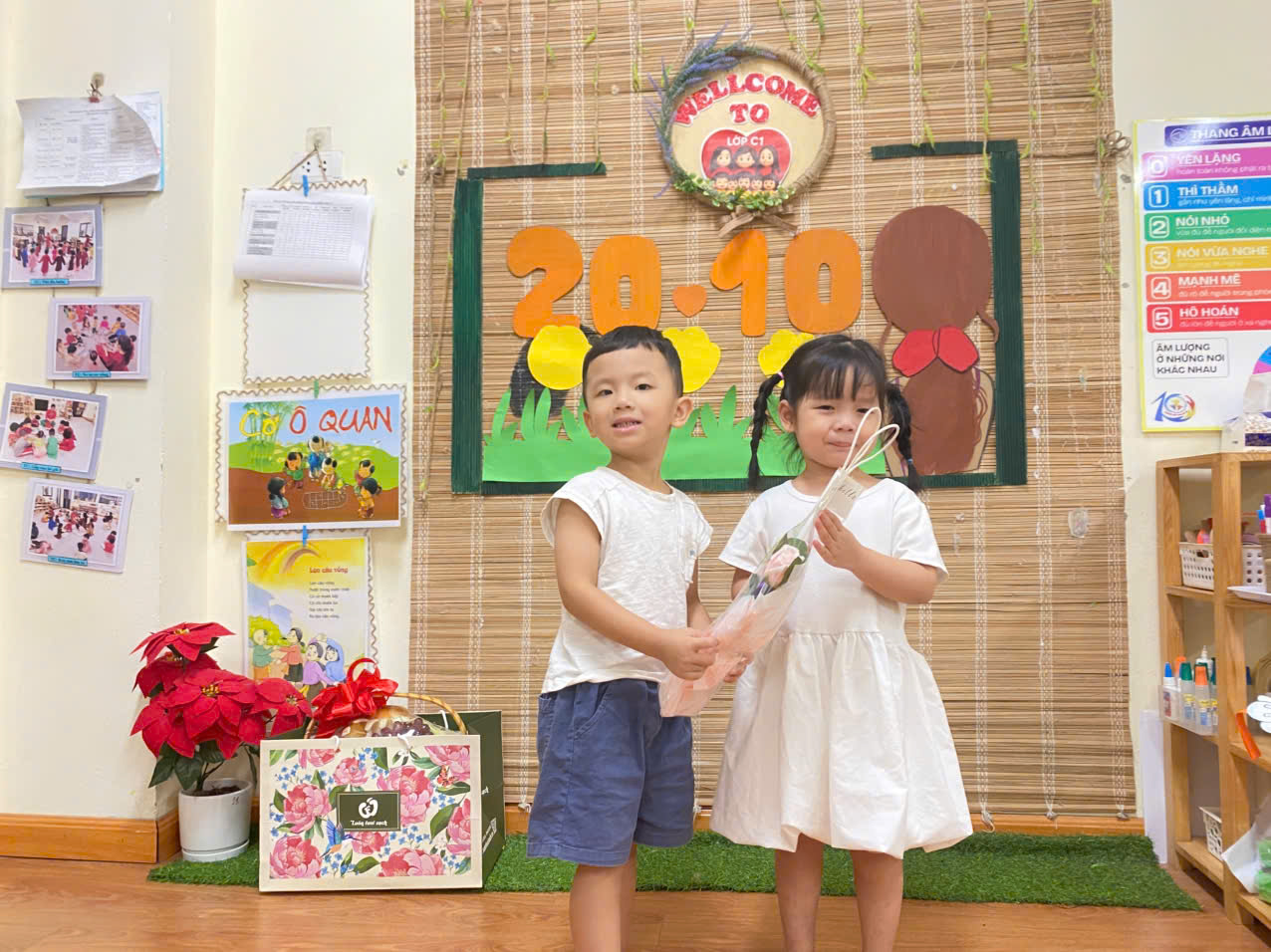 Dưới đây là một số hình ảnh của các con lớp mẫu giáo bé C1 trong chuỗi hoạt động 20/10