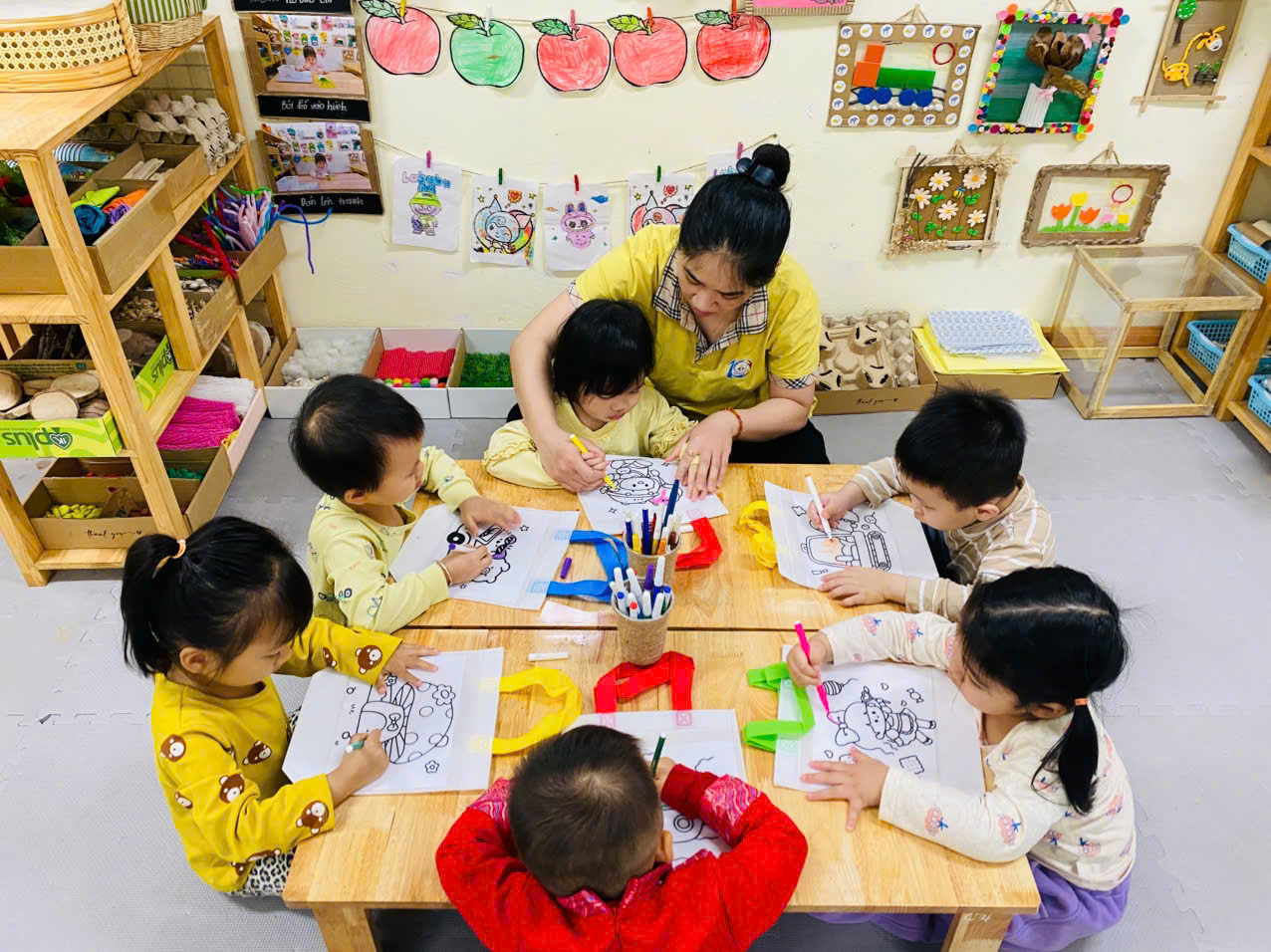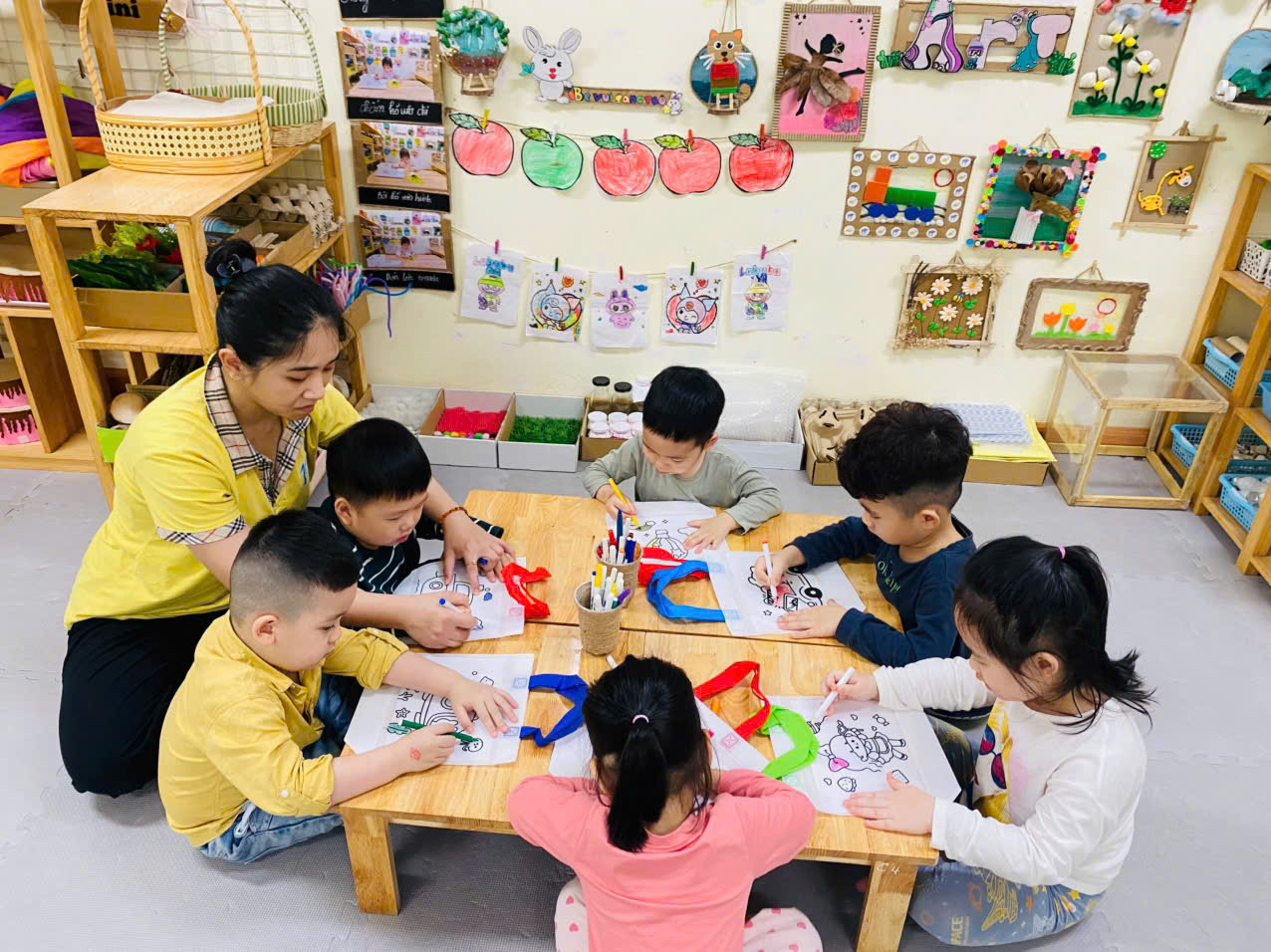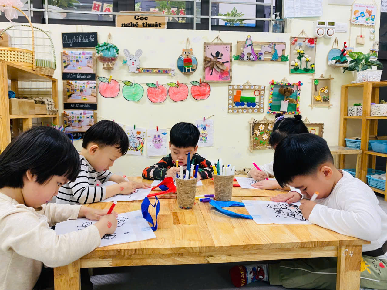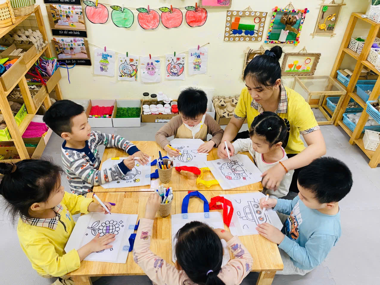 Và 1 hoạt động ko thể thiếu là :" Bé trang trí túi làm quà tặng Bà, tặng Mẹ"