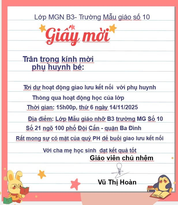 Cảm ơn cô Vũ Hoàn, cô Thu Ban và các bạn nhỏ lớp MGN B3 đã cho các bố mẹ một cơ hội để gần các con hơn, hiểu các con hơn. Ở một khía cạnh nào đó, tôi nhận thấy các con giỏi và tự tin hơn bố mẹ ngày xưa rất nhiều.