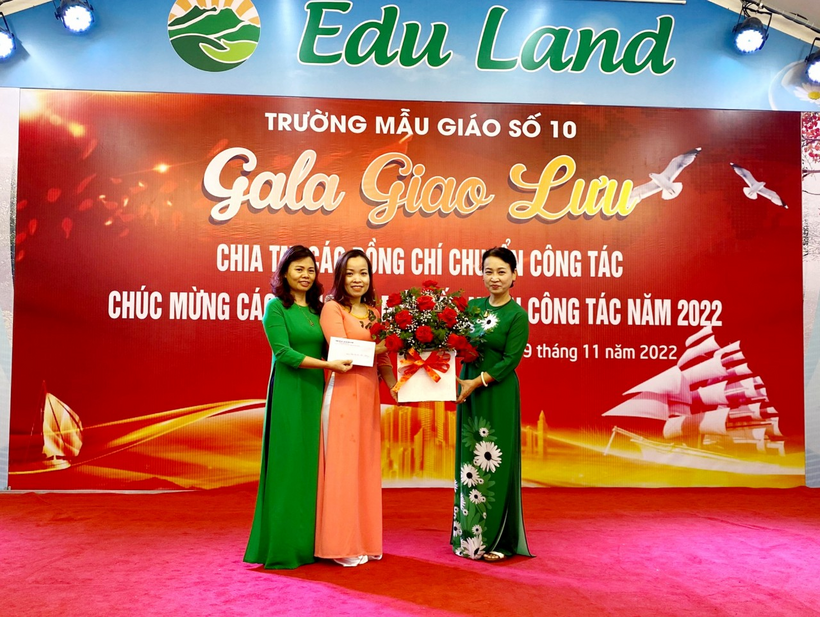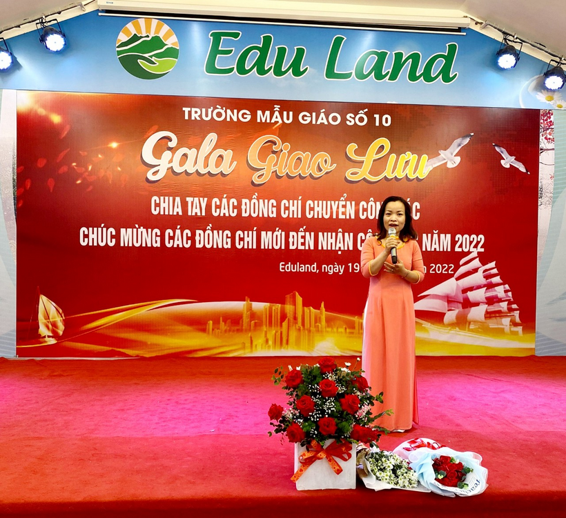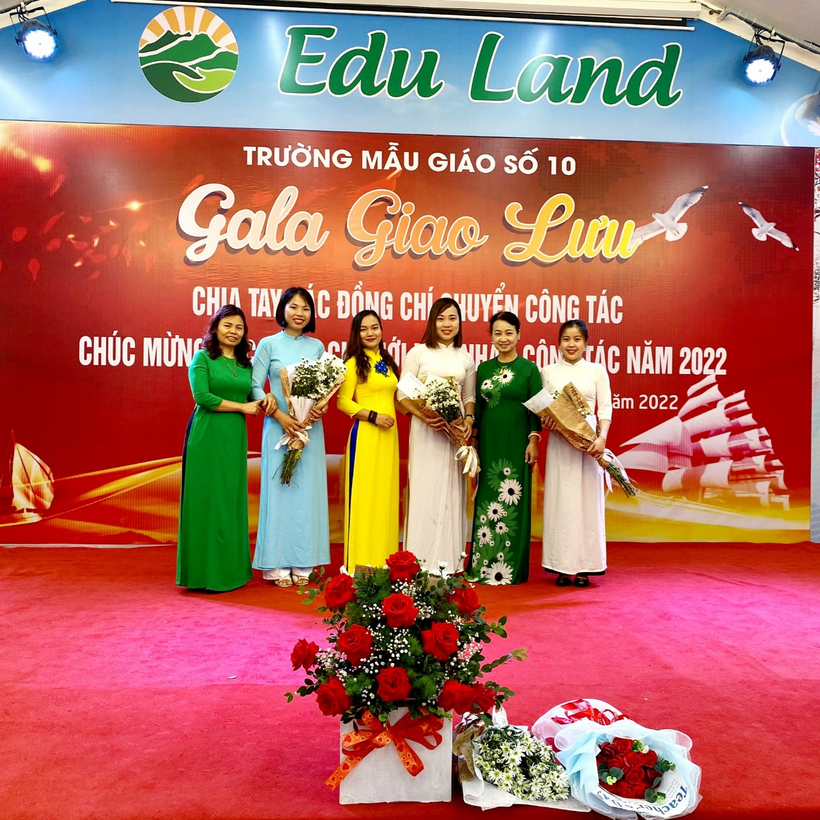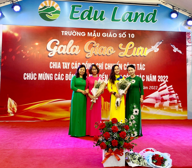 Lưu luyến chia tay các đồng chí chuyển công tác, phấn khởi chúc mừng đ/c Dương Thu Giang được bổ nhiệm làm Phó hiệu trưởng trường Mẫu giáo Số 10, và đón nhân viên kế toán Nguyễn Thị Hồng Sâm được điều động về làm kế toán của trường là thành viên mới của hội đồng nhà trường. Phát biểu trong buổi gala, đ/c Trần Thị Mai Anh – Bí thư Chi bộ, Hiệu trưởng nhà trường đã chúc mừng 2 đ/c CBQL và nhân viên mới, đồng thời mong muốn tất cả cán bộ giáo viên nhân viên trường Mẫu giáo Số 10 hãy cùng nhau xây dựng trường MG Số 10 thành ngôi nhà chung đoàn kết một lòng, phấn đấu hoàn thành xuất sắc nhiệm vụ, nhà trường được tặng Bằng khen của thủ tướng Chính phủ năm học 2022 – 2023.