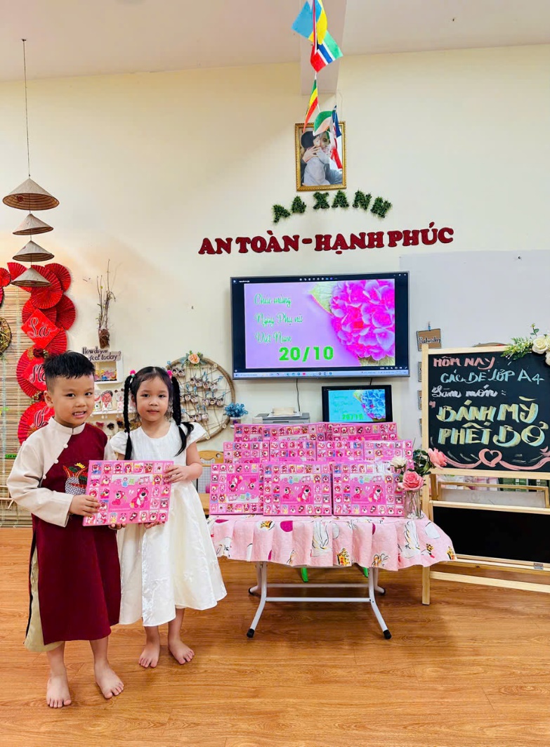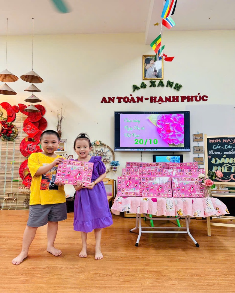 Tuần này các bạn nhỏ lớp A4 đã cùng nhau tham gia chuỗi hoạt động chào mừng ngày Phụ nữ Việt Nam 20/10. Ngày tôn vinh những vẻ đẹp và phẩm chất cao quý của người phụ nữ Việt Nam. Xin gửi lời chúc ý nghĩa nhất tới những người phụ nữ trân quý.