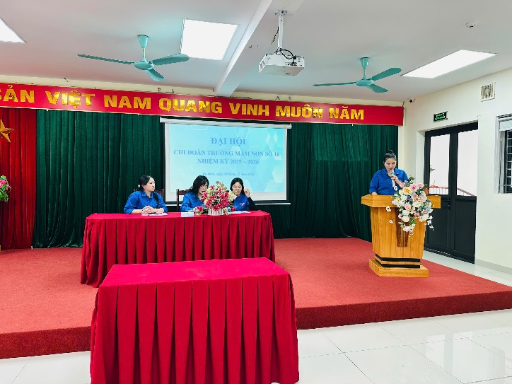 Thành công của Đại hội là minh chứng cho tinh thần đoàn kết, trách nhiệm và nhiệt huyết của tuổi trẻ Trường Mầm non Số 10. Tin tưởng rằng, trong nhiệm kỳ 2025 – 2026, Chi đoàn nhà trường sẽ tiếp tục phát huy vai trò xung kích, sáng tạo, góp phần tích cực vào sự phát triển chung của nhà trường và phong trào thanh niên địa phương.