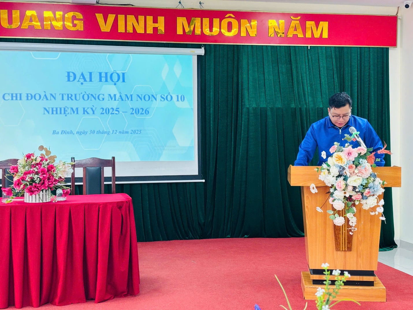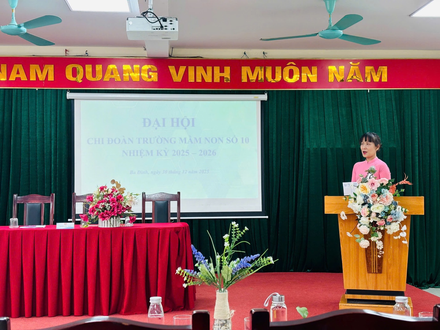 Chiều ngày 30/12/2025, tại Phòng Hội trường tầng 5 – Trường Mầm non Số 10, Đại hội Chi đoàn Trường Mầm non Số 10 nhiệm kỳ 2025 – 2026 đã được tổ chức long trọng, nghiêm túc và thành công tốt đẹp.