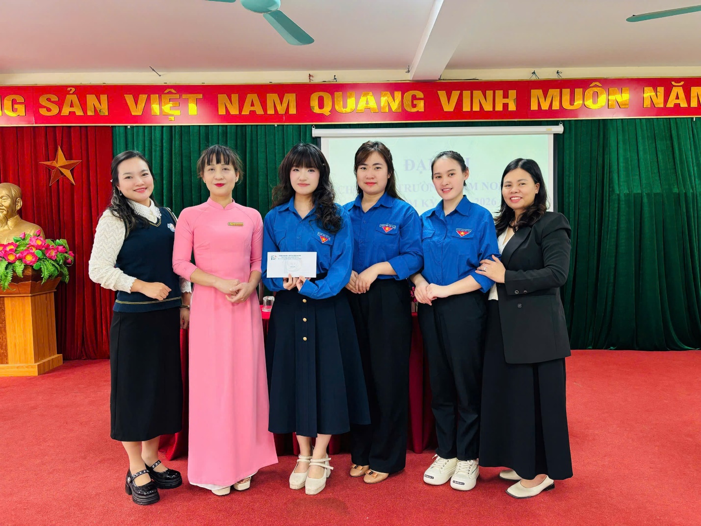 BCH Chi đoàn Trường Mầm non Số 10 lên nhận bó hoa tươi thắm kết thúc nhiệm kỳ 2024-2025.