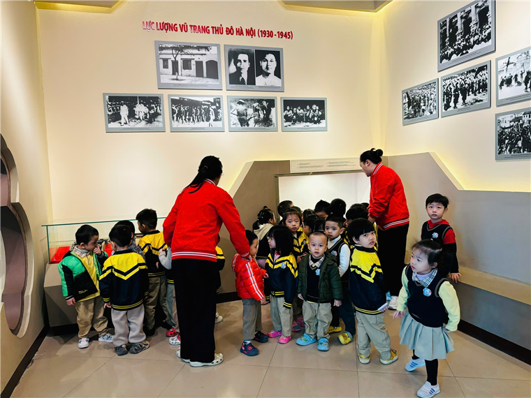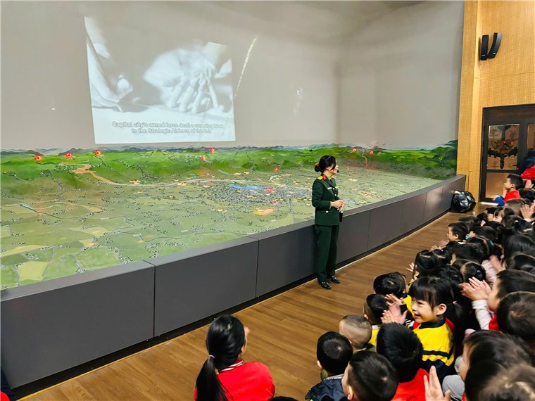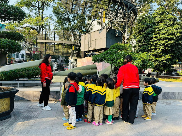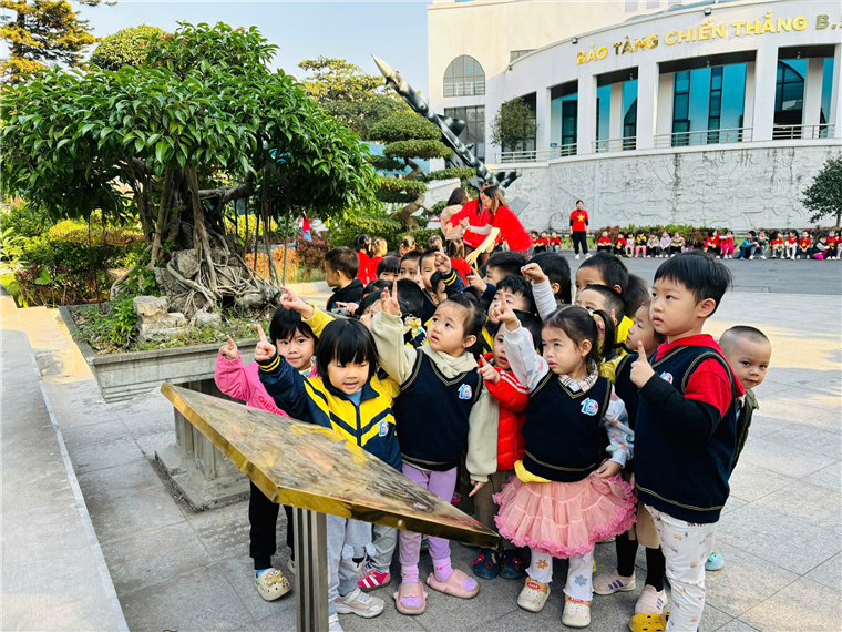 Hình ảnh các con được cô hướng dẫn và đi thăm quan bảo tàng B52.