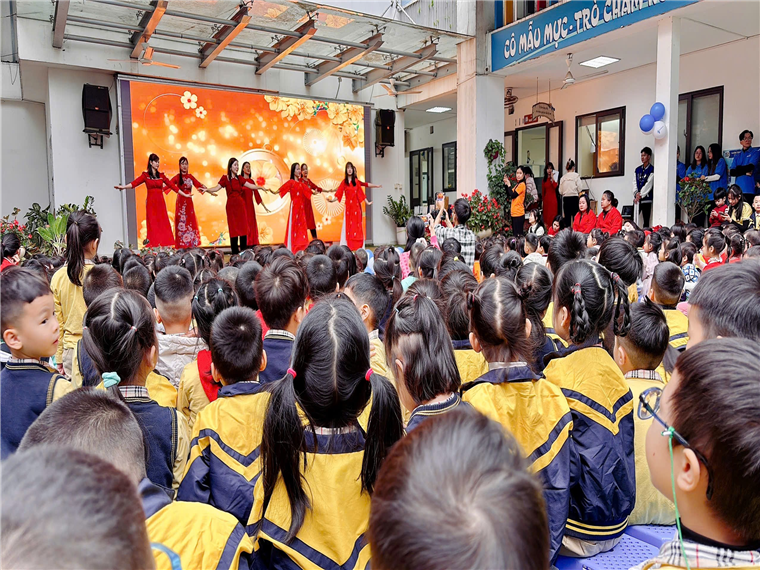 Mở đầu chương trình là văn nghệ chào mừng có sự góp mặt của cô và trò lớp MGL A5.