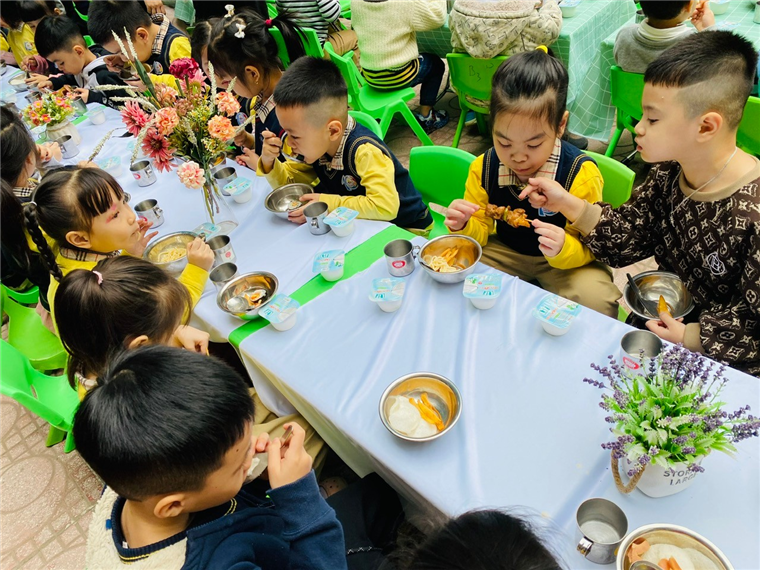 Cuối cùng là phần các bé vô cùng mong chờ: “Tiệc Bufet”. Tiệc buffet không chỉ là dịp để các con trải nghiệm ẩm thực đa dạng mà còn là cơ hội để các con rèn luyện tính tự lập, sự tự tin, kỹ năng giao tiếp và đặc biệt là thói quen văn minh trong ăn uống.