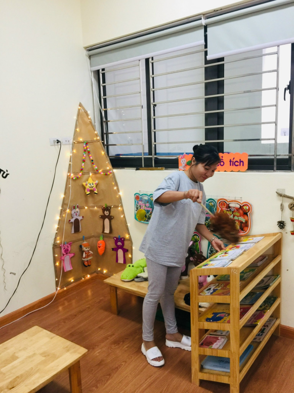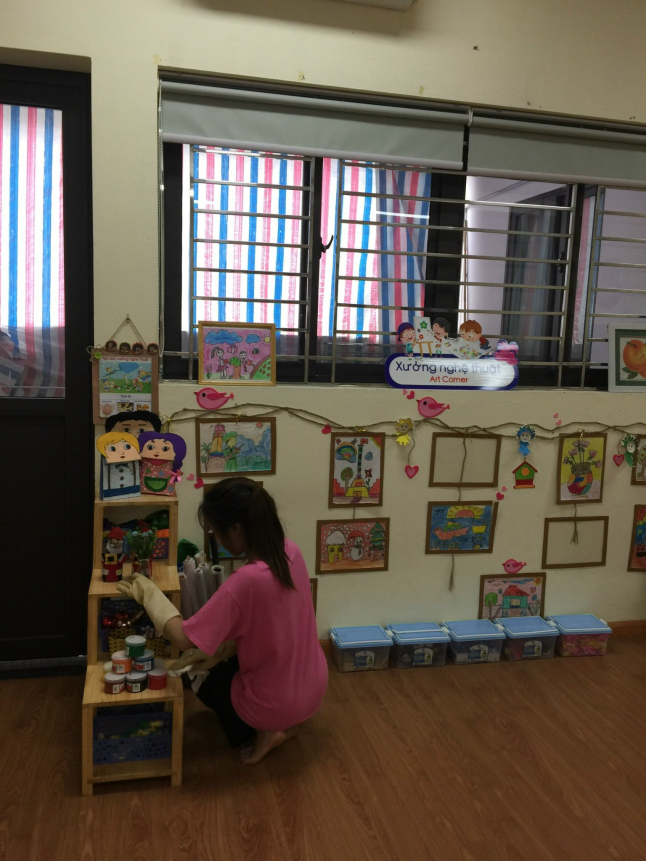 Và để có được môi trường lớp sạch sẽ, khang trang với bao nhiêu hoạt động, bao nhiêu trò chơi bổ ích và lý thú. Giáo viên khối mẫu giáo lớn Trường Mẫu giáo Số 10 đã cùng nhau lau dọn tổng vệ sinh, trang trí lớp học thật đẹp để sẵn sàng đón trẻ đến lớp.