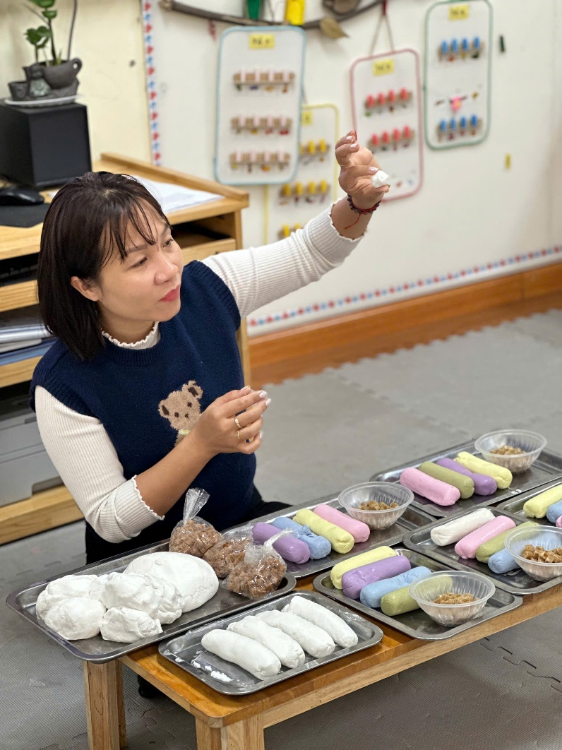 Những viên bột màu sắc được lăn tròn từ bàn tay của các bạn nhỏ