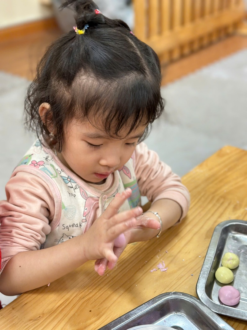Sau đây là một số hình ảnh của các bé lớp Mẫu giáo bé C3 trong hoạt động trải nghiệm: Bé tập làm bánh trôi: