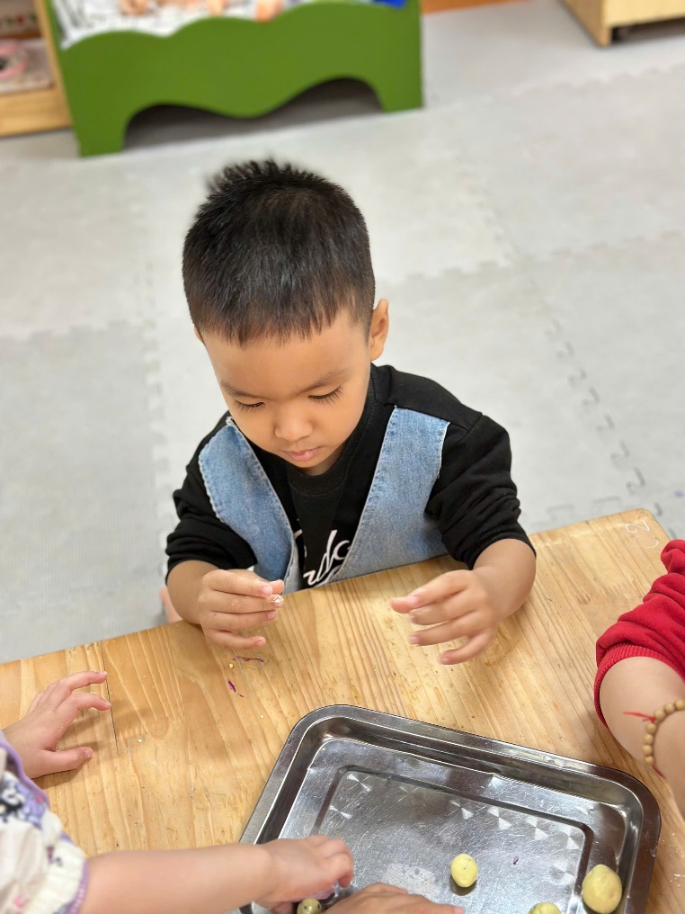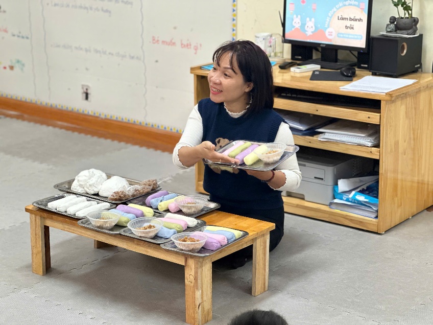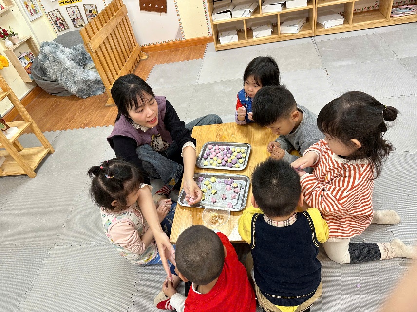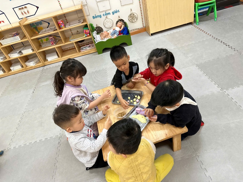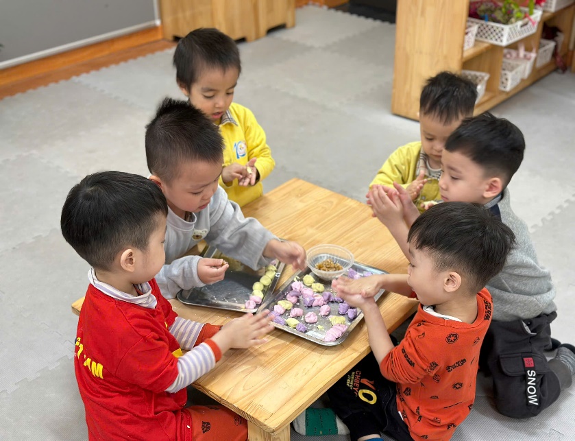 Các bé còn được trải nghiệm cảm giác vui sướng khi nhìn những chiếc bánh trôi từ từ nổi lên trên mặt nước, thể hiện sự thành công trong từng công đoạn. Đây là một hoạt động không chỉ giúp các bé khám phá thế giới ẩm thực mà còn là dịp để các con phát triển kỹ năng vận động tinh, khả năng phối hợp tay mắt và sự khéo léo trong công việc.