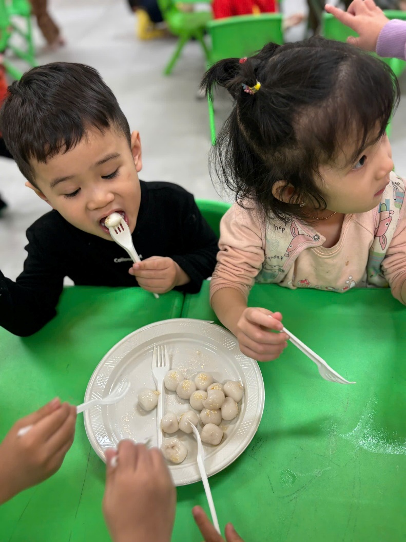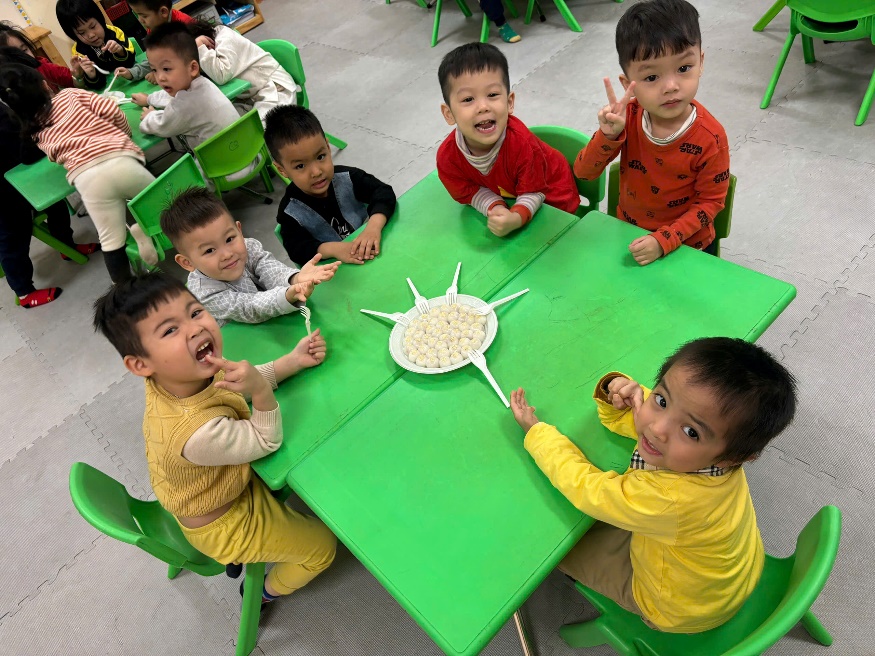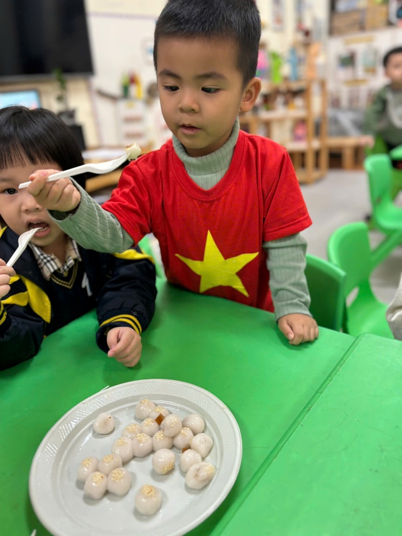 Sau khi hoàn thành, các bé cùng nhau thưởng thức những chiếc bánh trôi do chính tay mình làm ra, vừa ăn vừa chia sẻ những cảm nhận vui vẻ. Những tiếng cười rộn ràng, những câu chuyện nhỏ về ngày Tết Hàn Thực cũng được các bé kể cho nhau nghe. Qua đó, các bé không chỉ hiểu thêm về ý nghĩa của ngày Tết mà còn cảm nhận được sự ấm áp của tình bạn bè, thầy cô.