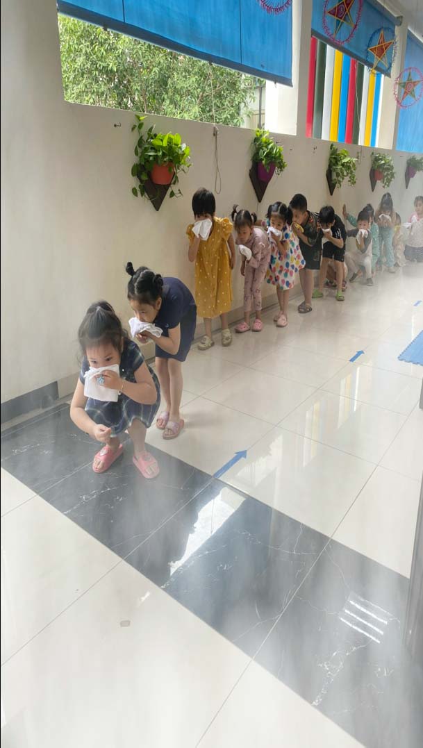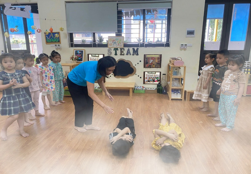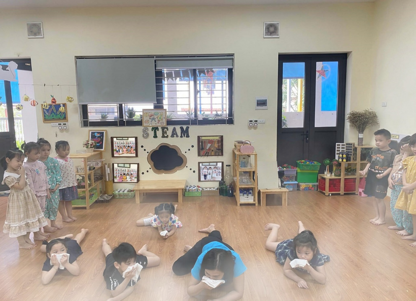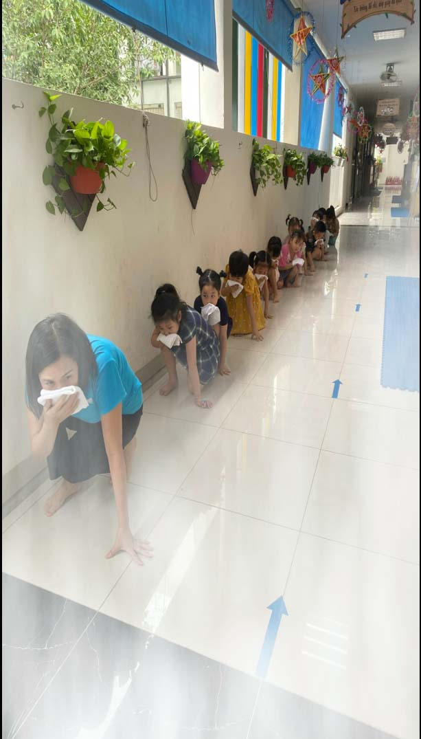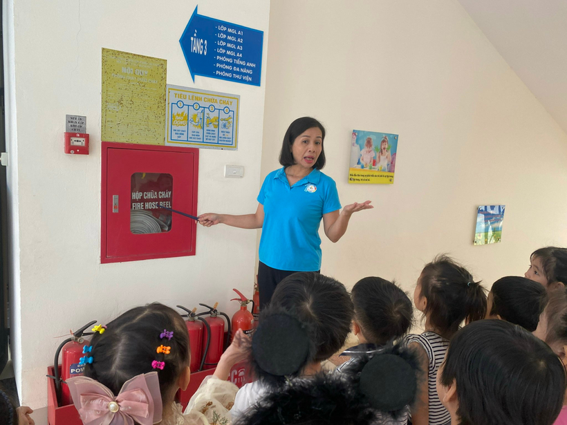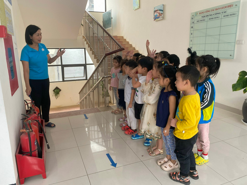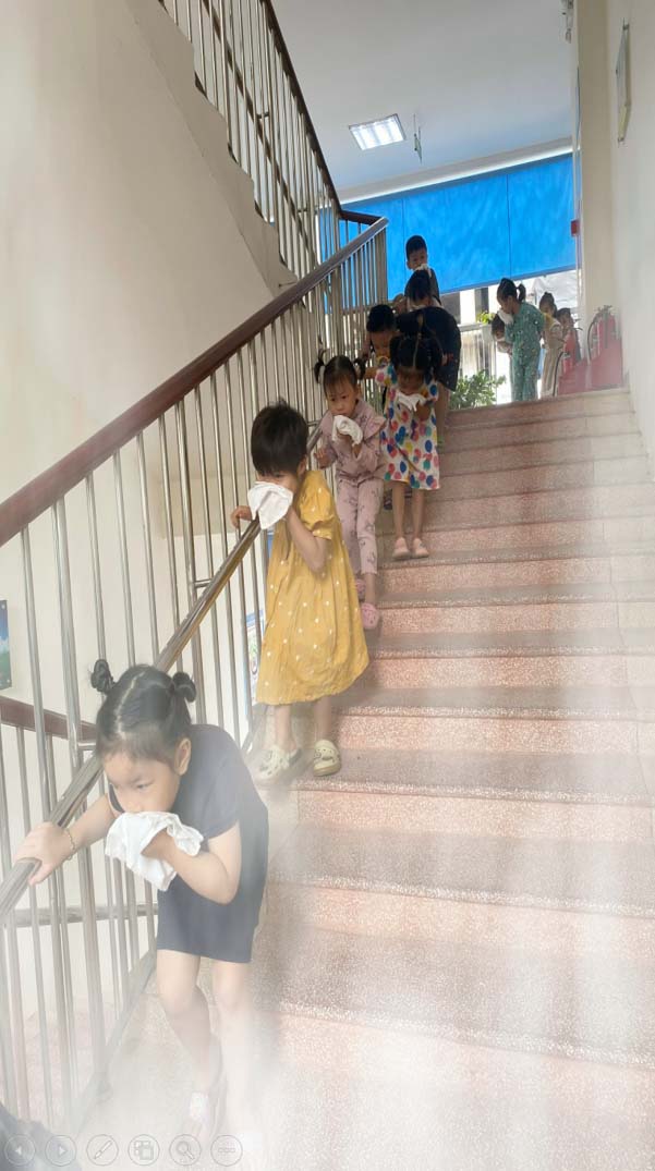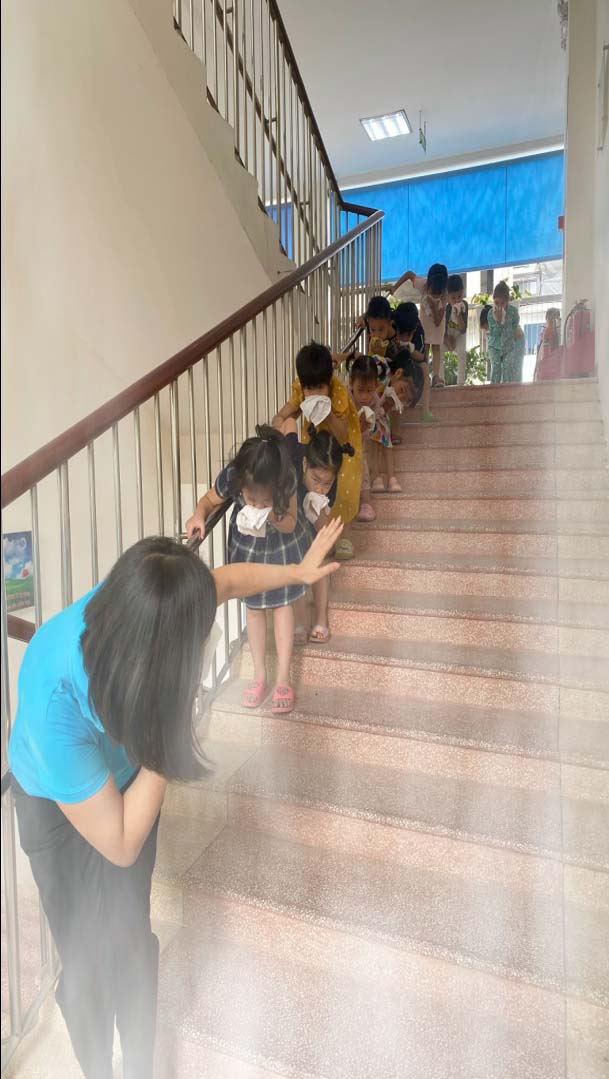 Sau đây là một số hình ảnh của giáo viên khối mẫu giáo lớn trường Mẫu giáo Số 10 dạy trẻ kỹ năng thoát hiểm trong đám cháy: