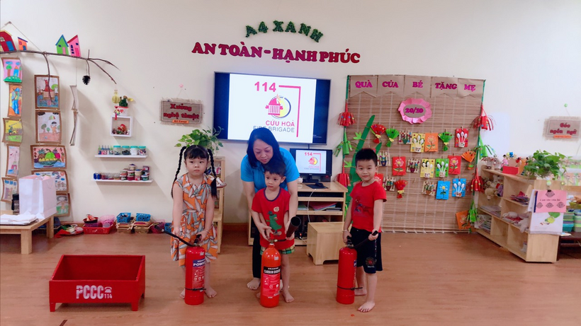 Kỹ năng 5: Người lớn cũng nên dạy cho trẻ cách sử dụng bình chữa cháy để dập tắt những đám cháy nhỏ, kiểm soát được hành vi, nhận thức của mình khi xảy ra cháy nổ. Tuy nhiên, không dạy trẻ hắt nước vào đám cháy vì có thể ảnh hưởng đến thiết bị điện ảnh hưởng đến quá trình cứu hộ, cứu nạn.