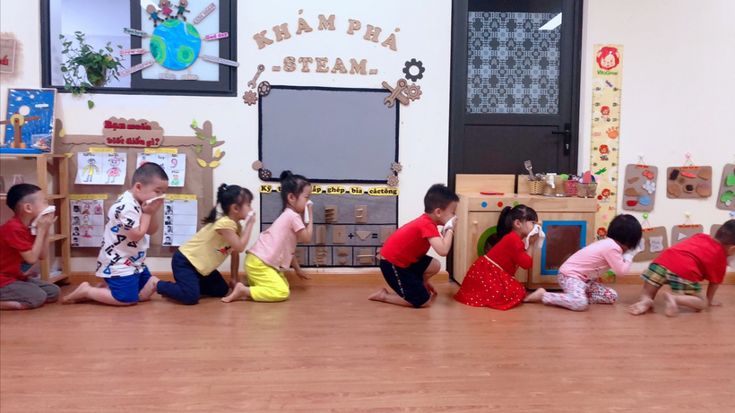 Kỹ năng 4: Các trường hợp tử vong chủ yếu là do hít phải khí độc nên người lớn cần hướng dẫn cho trẻ dùng khăn ướt để bịt mũi và cúi sát người xuống sàn nhà khi thoát nạn. Khi di chuyển, trẻ cần lấy khăn ướt, bịt vào mũi để tránh khí độc nhiễm vào có thể gây ngạt thở. Trẻ phải cúi thấp người xuống càng tốt vì càng sát đất thì khói và khí độc càng ít hơn.